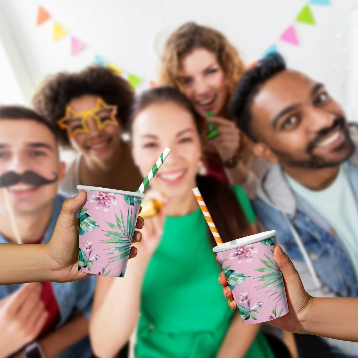 - ECO-FRIENDLY: Disposable drinking cups made from 100% biodegradable and compostable materials. All inks used in the printing process are water-based. Recommended temperature range for beverages is below 158°F.