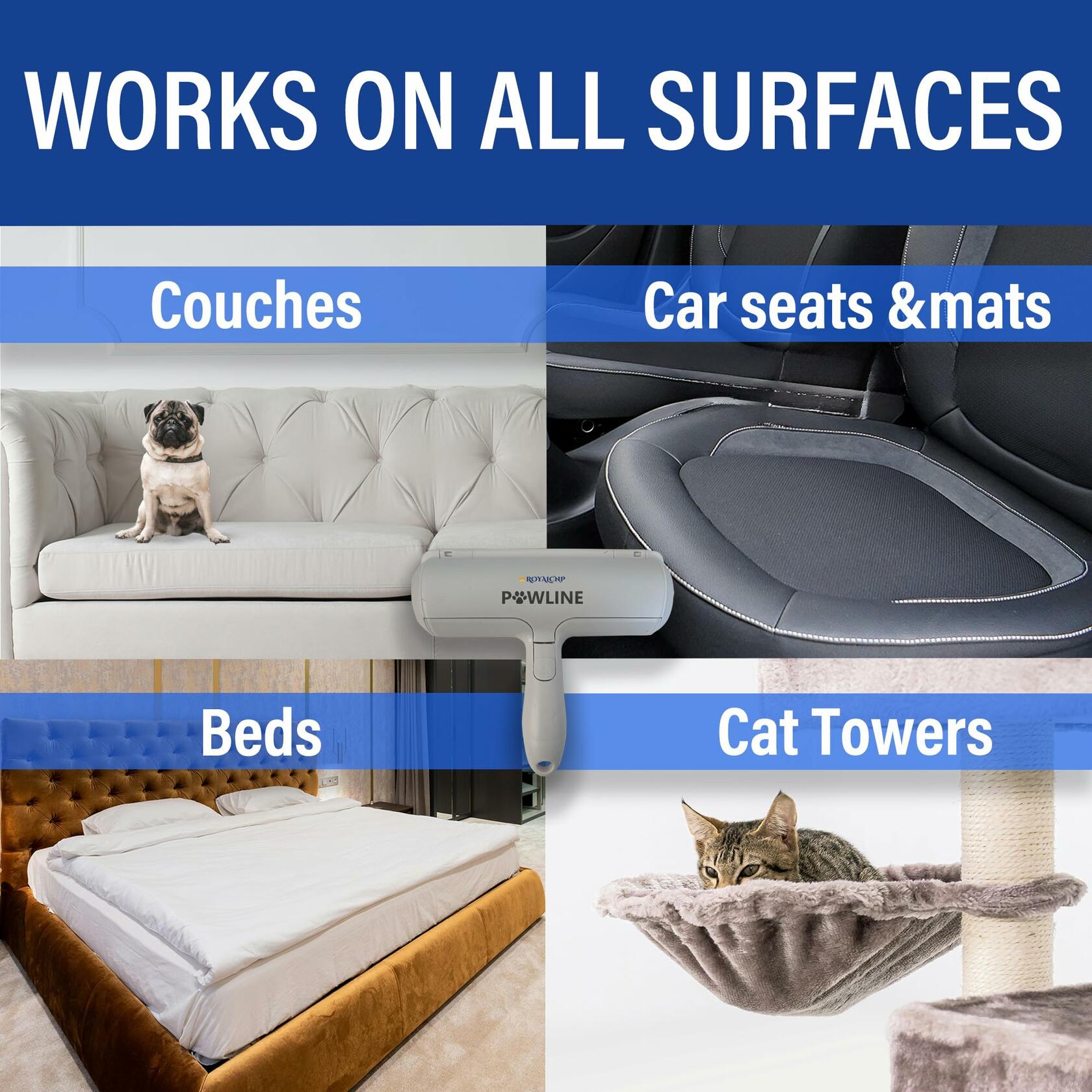 - ✔ VERSATILITY: Finally get rid of fur on everything due to this product's effectiveness on multiple surfaces, including furniture, clothing, car interiors, and carpets. Very easy and simple to clean due to its innovative design and very compact allowing convenience and ease of use. Simply roll over the area with pet hair and use the button to open up the compartment storing all the pet hair that was picked up. Perfect for families with pets.