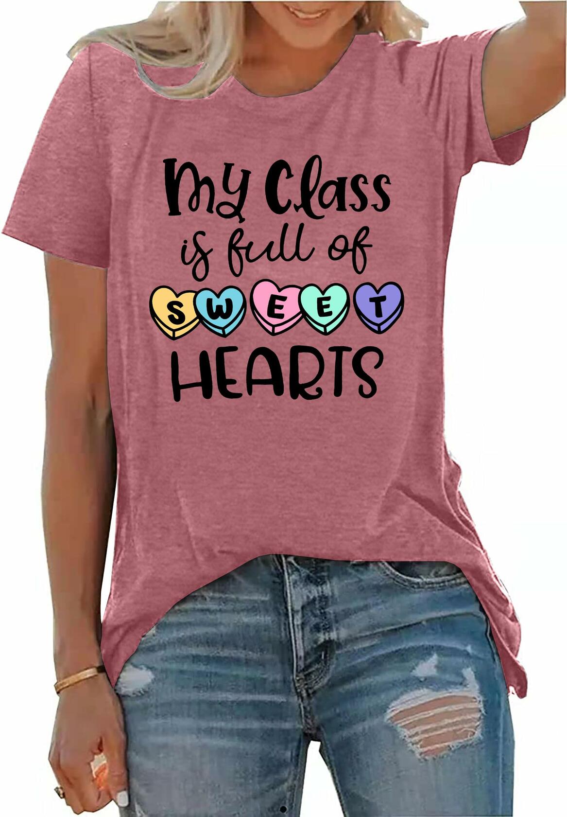 Teacher Valentines Shirt for Women Cute Love Heart Tshirts Graphic Valentine Gift Tee Casual Hearts Tops