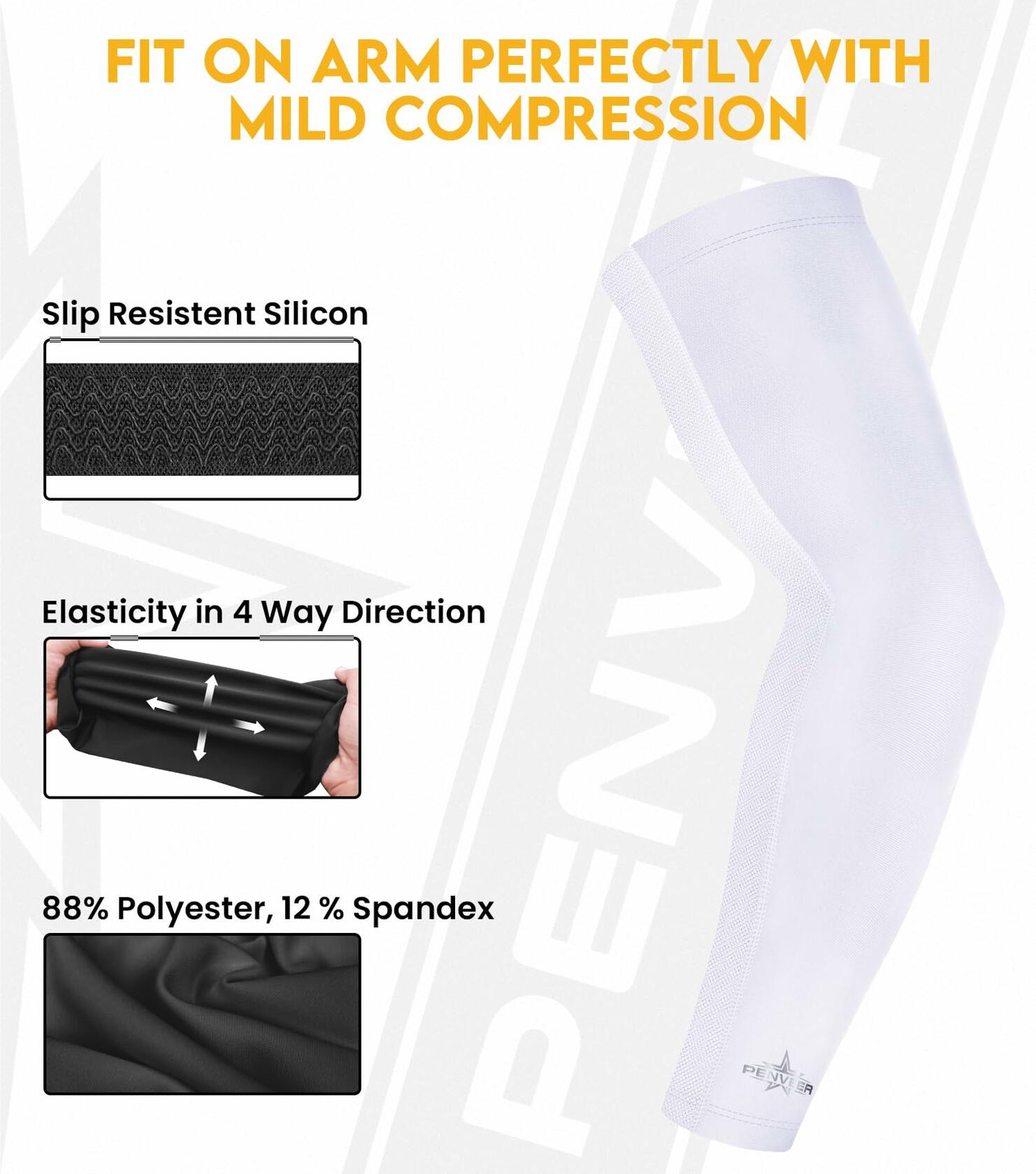 Penveer Compression Arm Sleeves Breathable Mesh Cooling AL White Size L