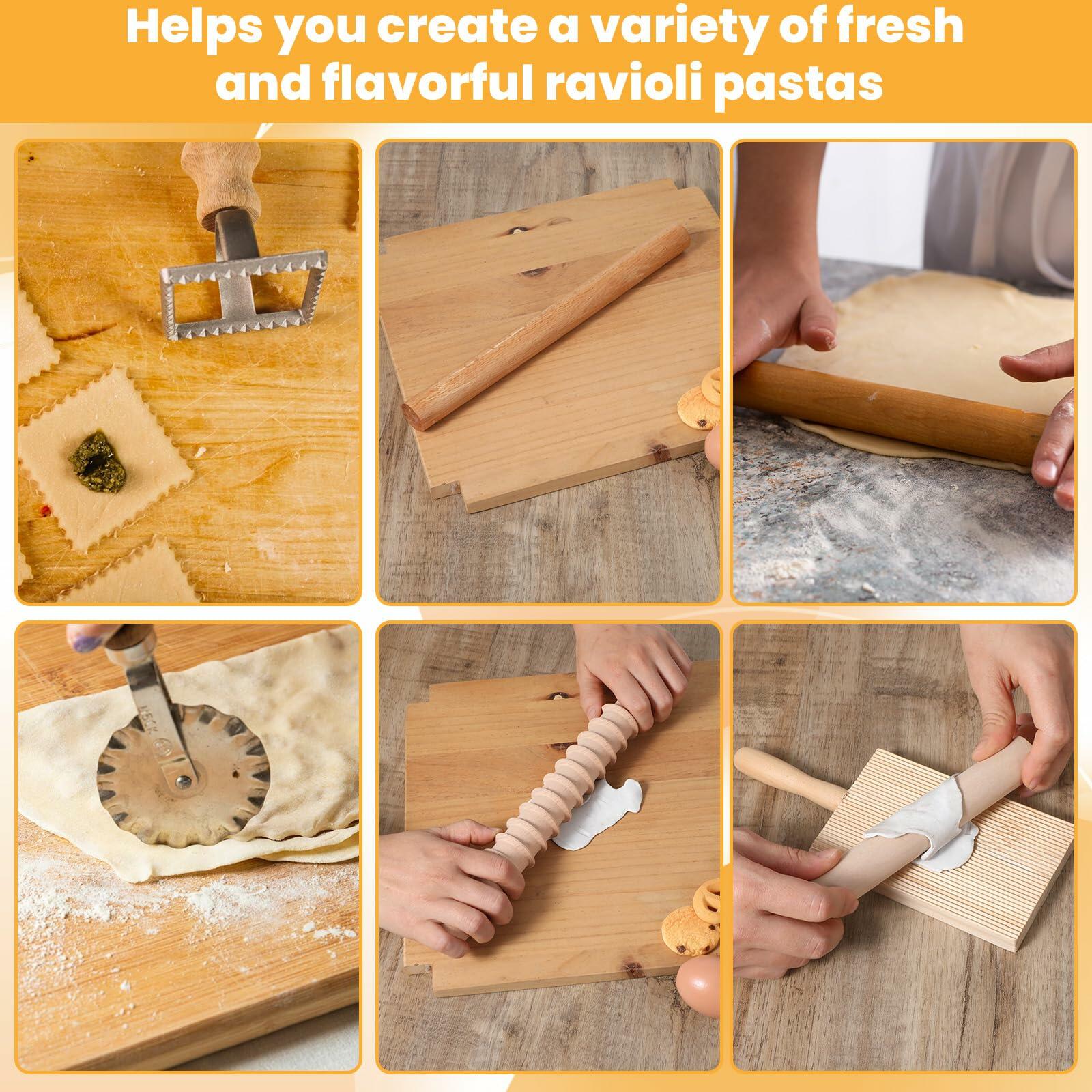 PEOVLVN 9 Pcs Pasta Making Kit Gnocchi Board Roller Cutter Dumpling Maker