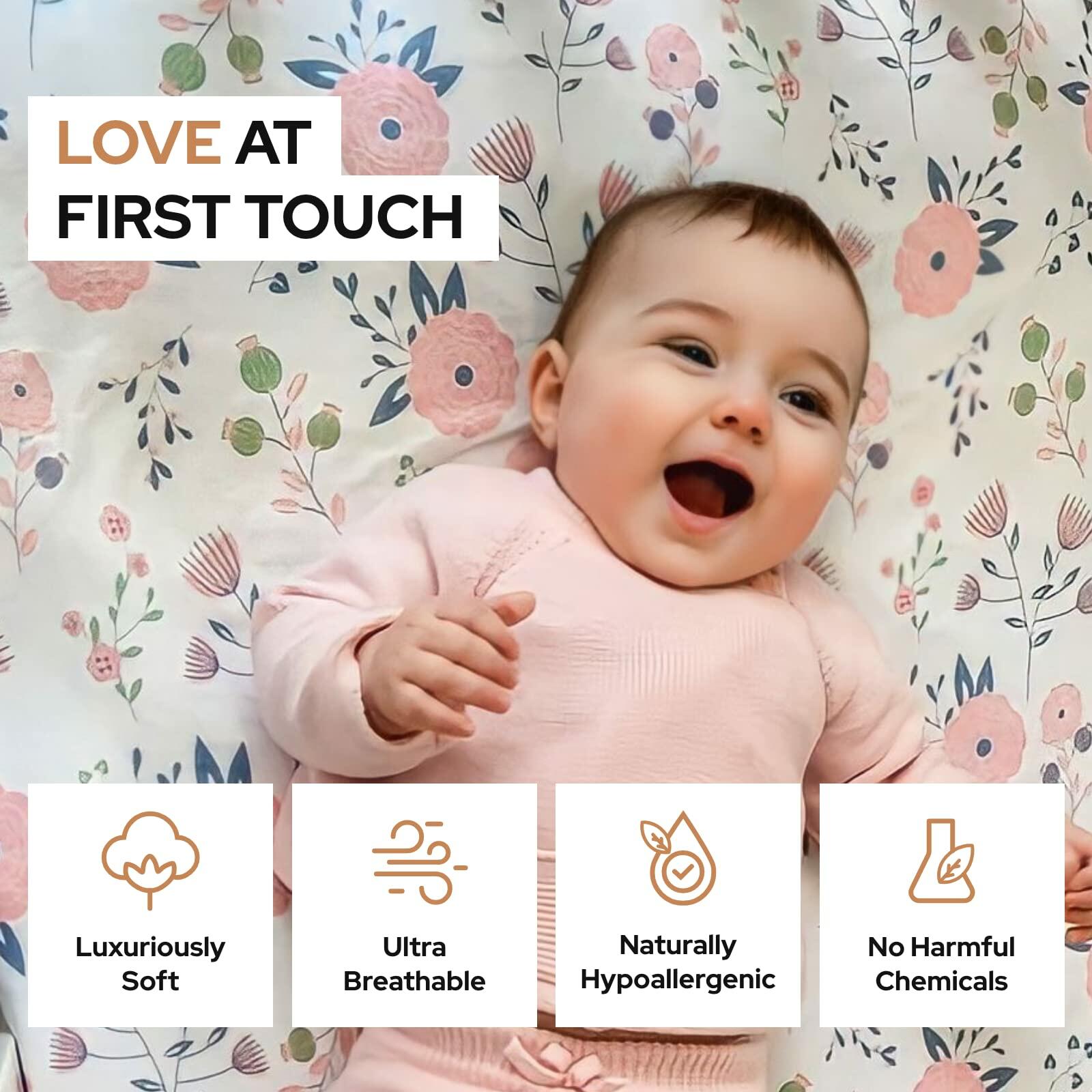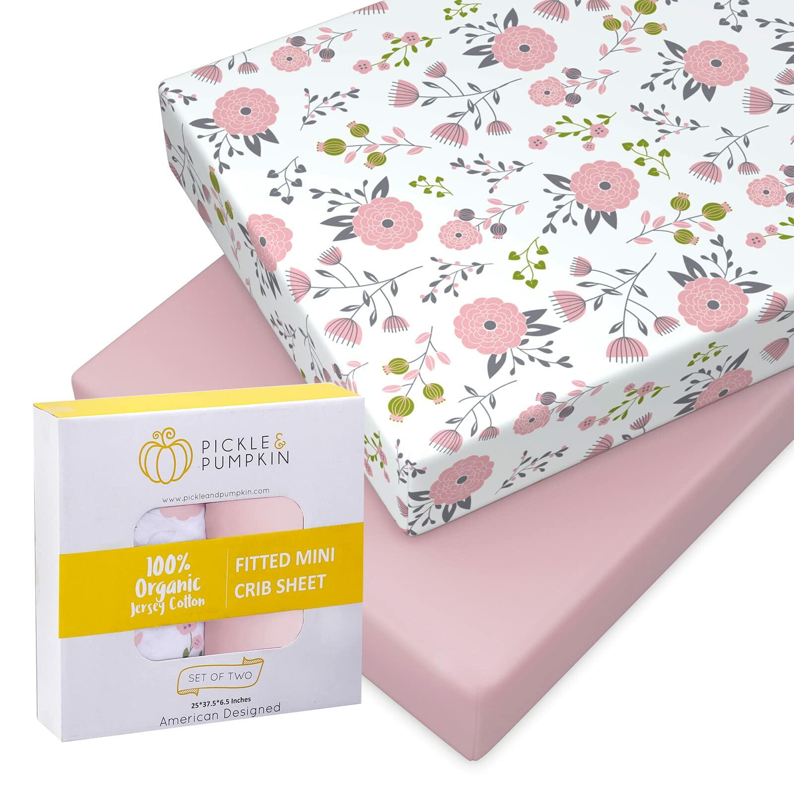 Pickle & Pumpkin Mini Crib Sheet Floral Pink Organic Cotton 2-Pack