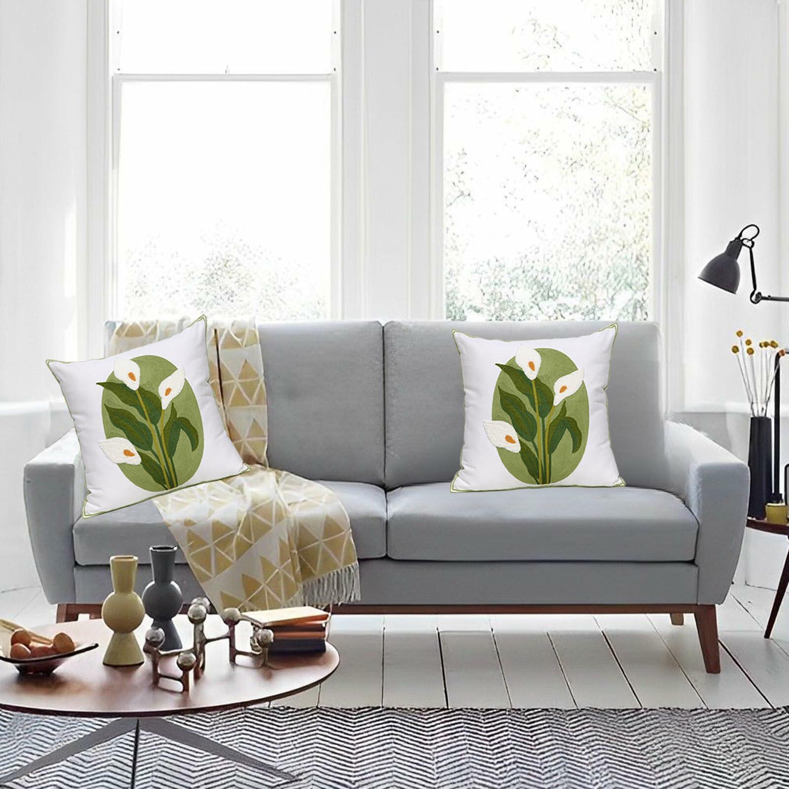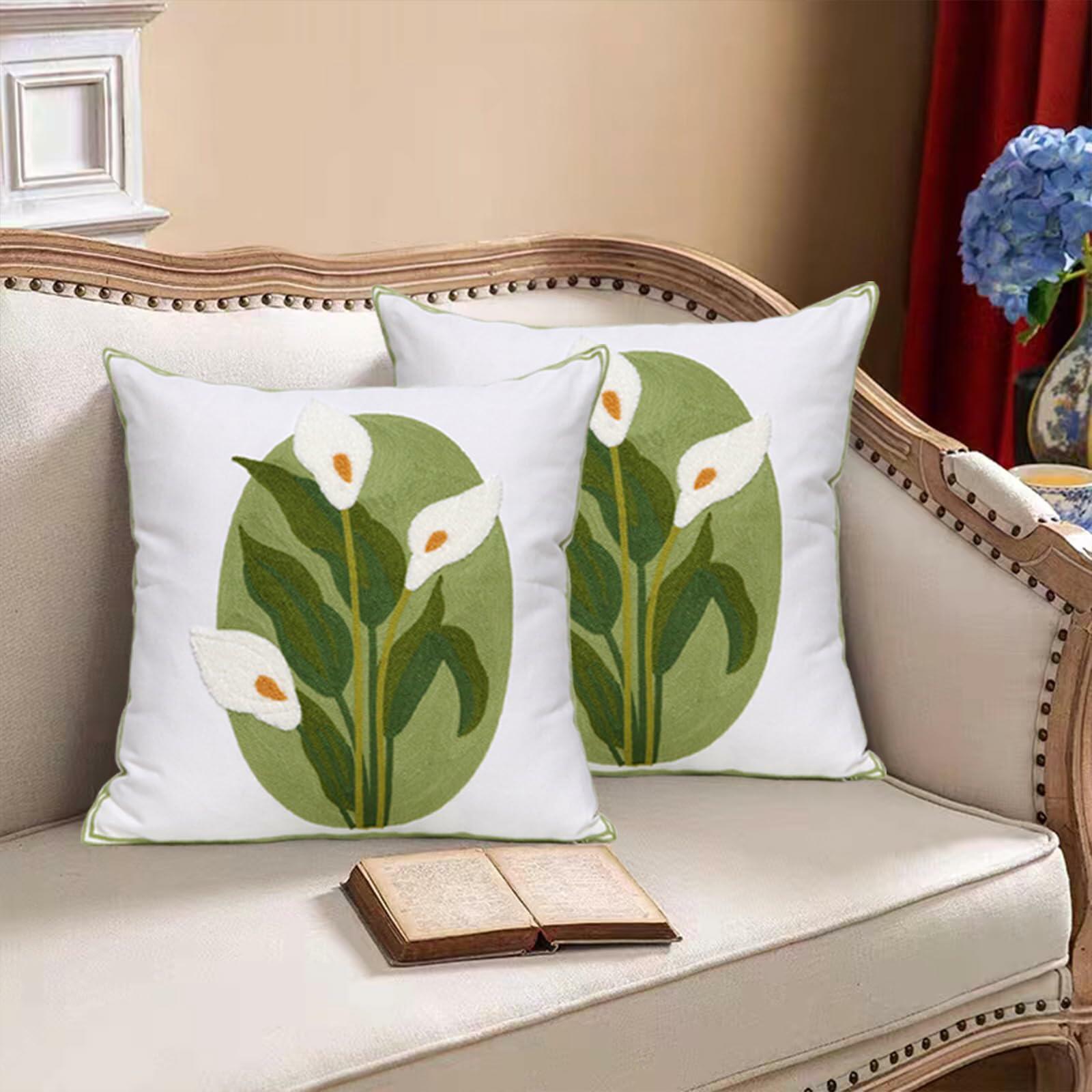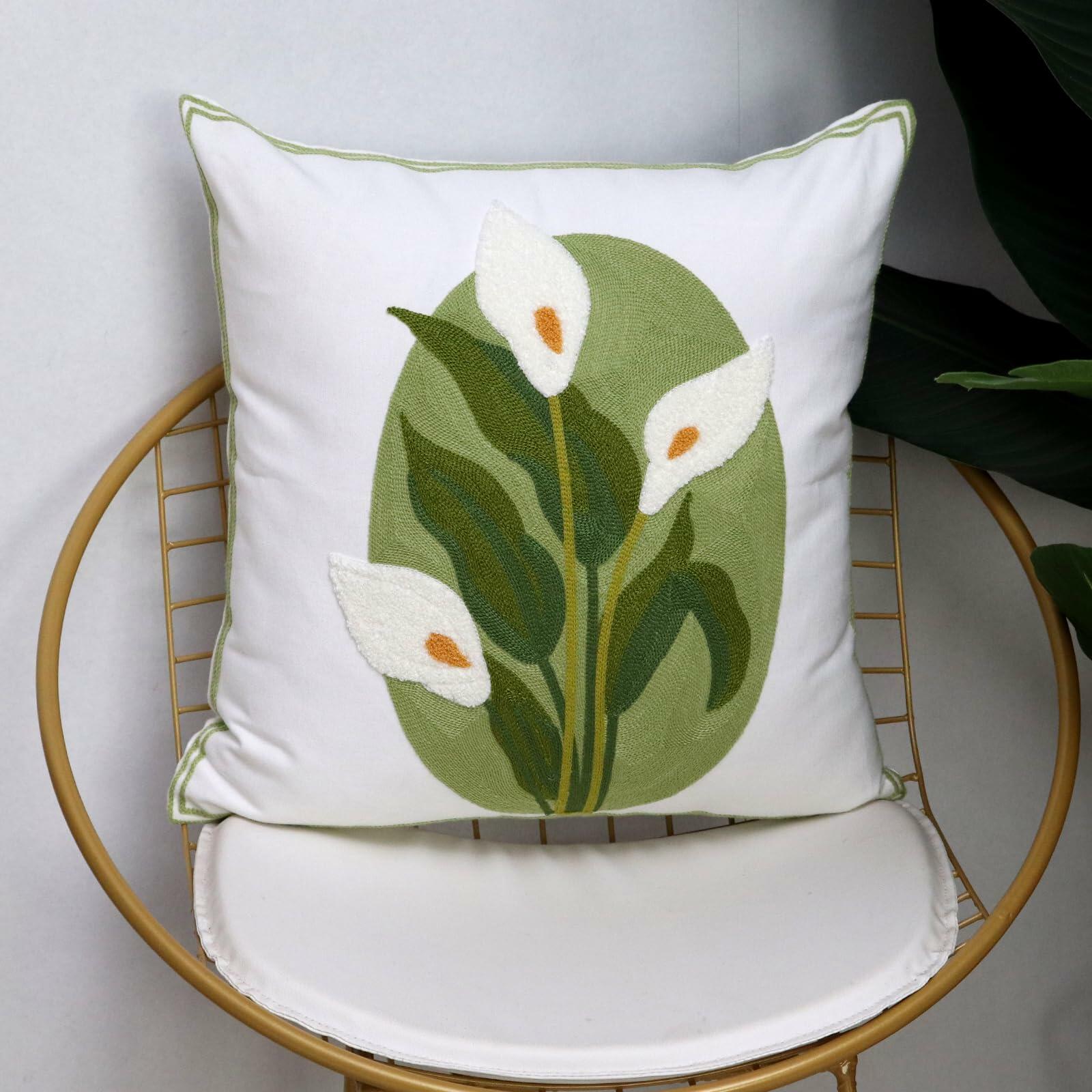 Pilmandu Embroidered Throw Pillow Covers 18x18 Calla Floral Pack of 2