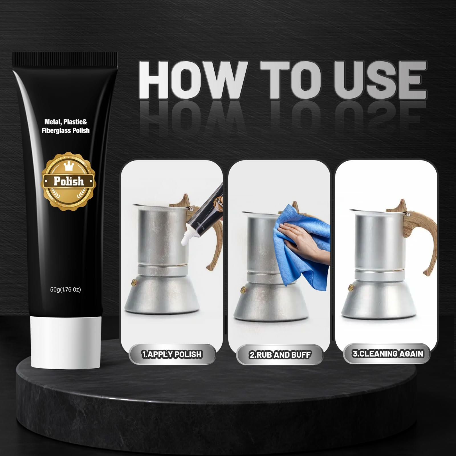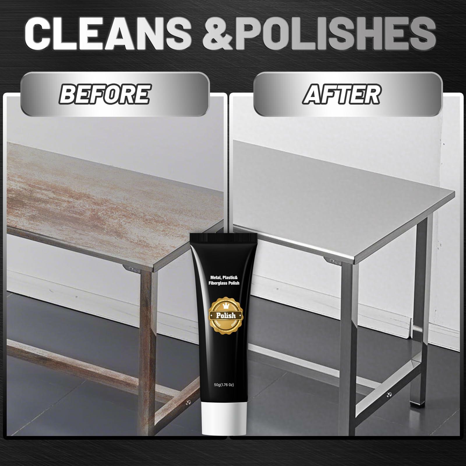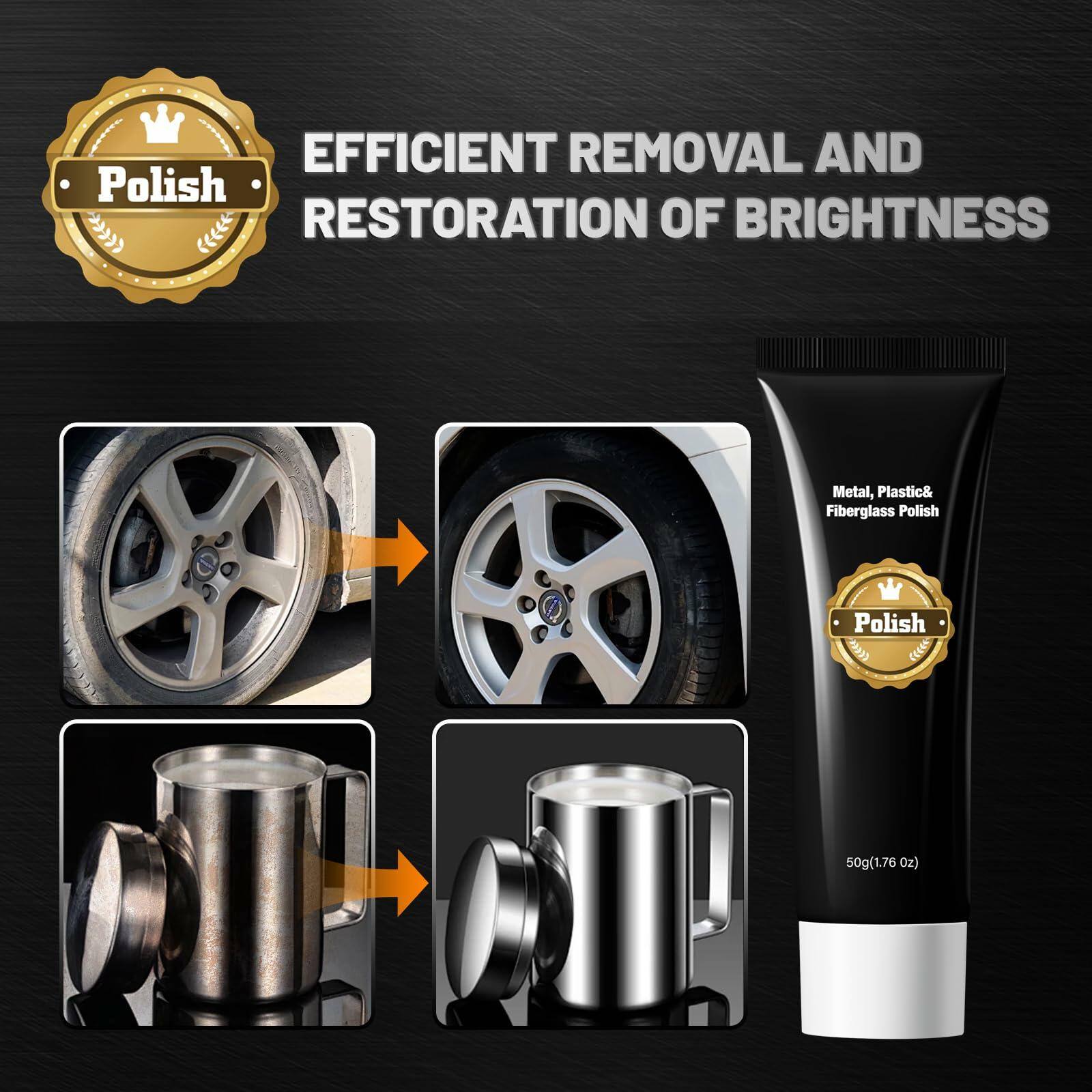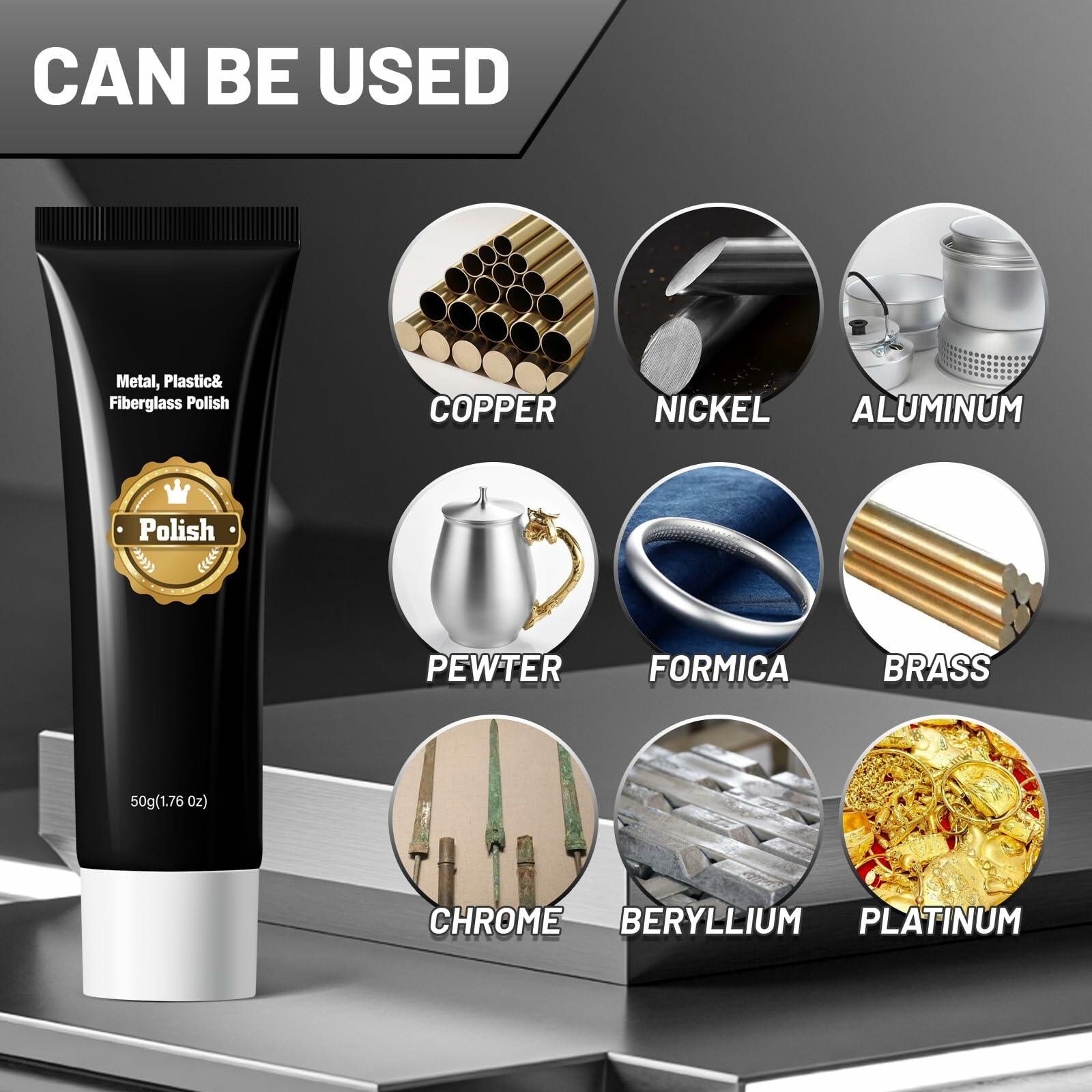 This versatile metal polish and rust remover for metal is a must-have solution for revitalizing surfaces across materials like silver, brass, copper, stainless steel, chrome, aluminum, and bronze. Perfect as a silver polish for silverware, it effortlessly rub and buff tarnished, oxidized, or rusted items to restore their original brilliance. Designed as a premium brass cleaner and polishing compound, it tackles tough stains on antique gold, corroded metals, and heirlooms, delivering a mirror-like finish with minimal effort. Its dual-action formula works as both a polishing cleaner and protective sealant—using natural ingredients to remove tarnish, oxidation, and light rust while polymer-based layers prevent future damage. Safe for food-contact surfaces, this non-toxic, non-abrasive, and odorless rust remover for metal offers triple the longevity of conventional products. Whether you rub and buff antique gold treasures, polish everyday stainless steel, or revive silverware, this concentrated metal polish guarantees stunning results in half the time, making it the ultimate choice for preserving shine and durability.FEATURES
