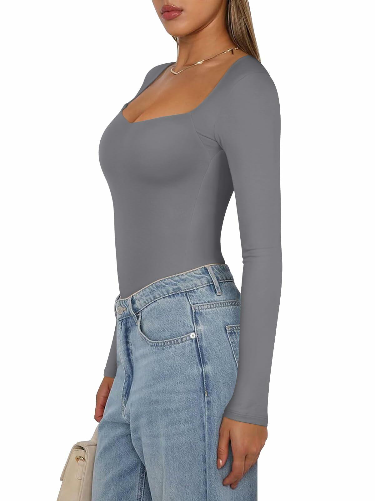 - ♥Features:The square long sleeve top offers a slim fit and serves as a comfortable base layer, ideal for colder weather. Its double-layered body provides warmth and subtle tummy control, minimizing visible bumps, the sleeves are slightly thinner than the body, Hugs body it shows of your figure really great!