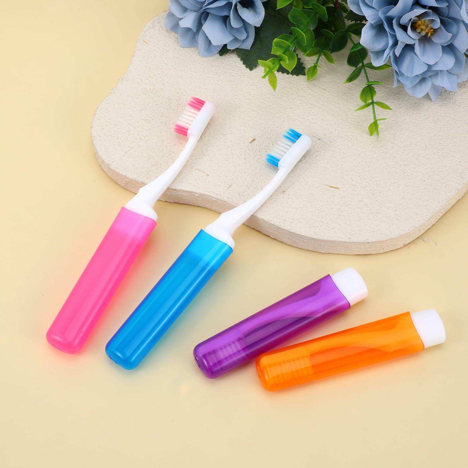 - Package Included: You will get 4 pcs travel toothbrushes set, 4 different colors, orange, pink, purple, blue. The quantity is enough to meet your daily use and replacement needs.