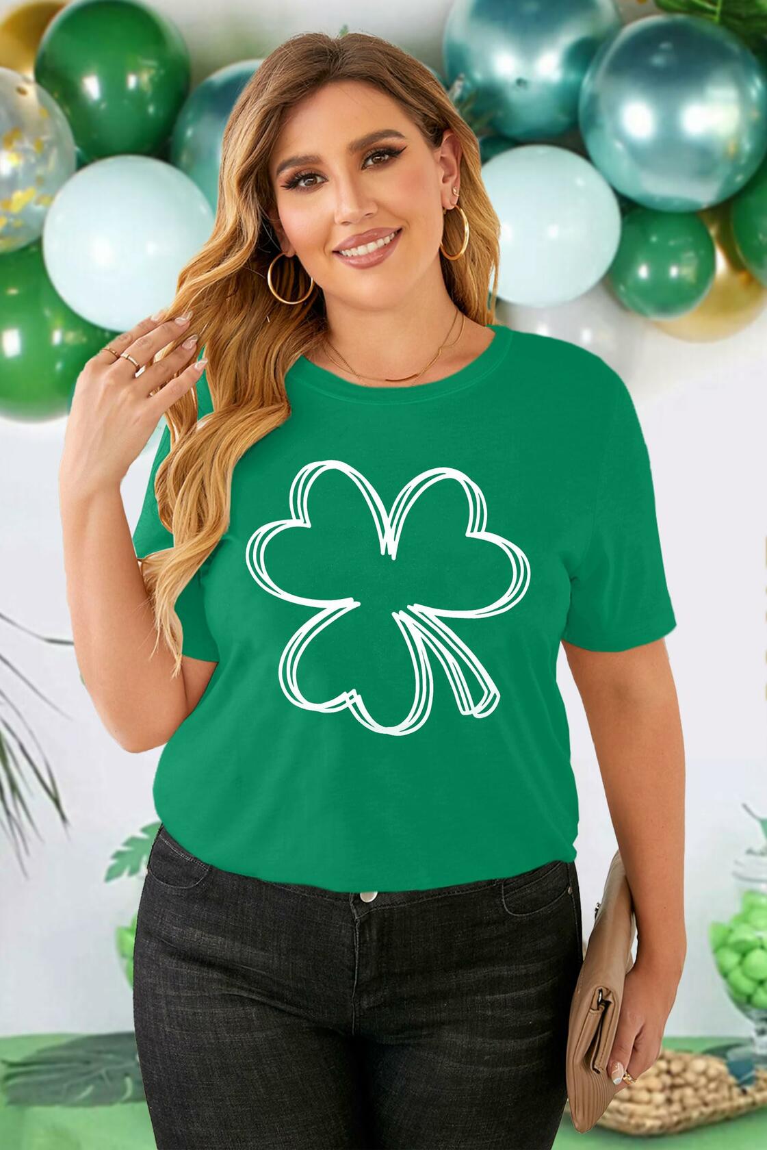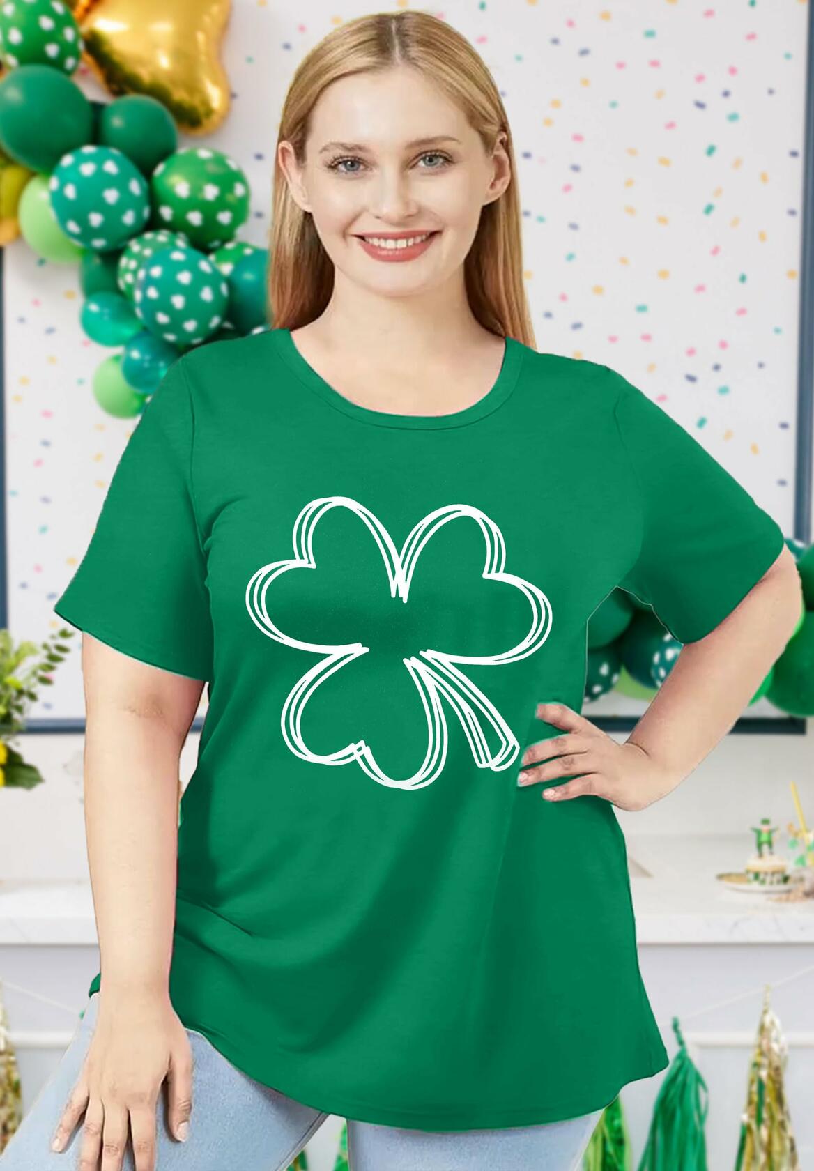Plus Size St. Patrick's Day Lucky Shamrock Tee Shirt Women Green XL