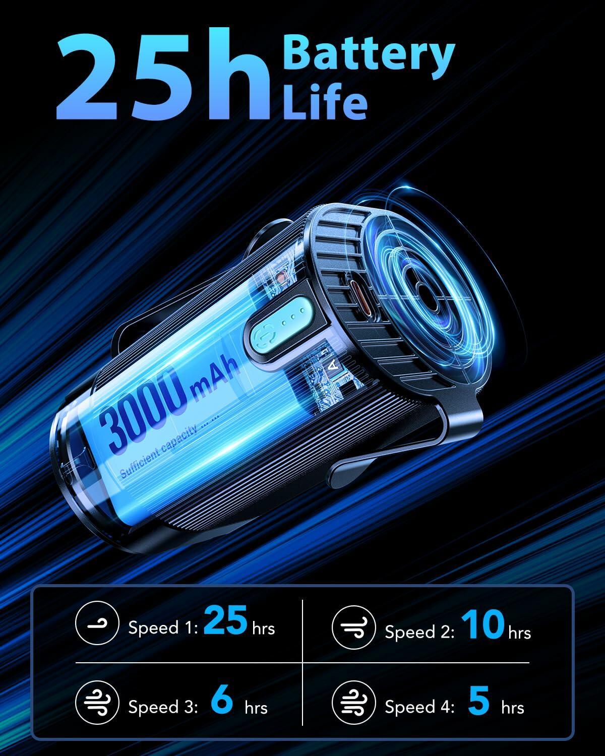- 25 HOURSE LONG-LASTING BATTERY LIFE: Enjoy all-day comfort with the Barito Waist Fan's high-capacity lithium battery and intelligent AI energy-saving chip. A single charge provides up to 25 hours of continuous use, depending on the wind speed. The convenient Type-C charging port allows for easy recharging with a wall adapter, power bank, computer, or any USB device.