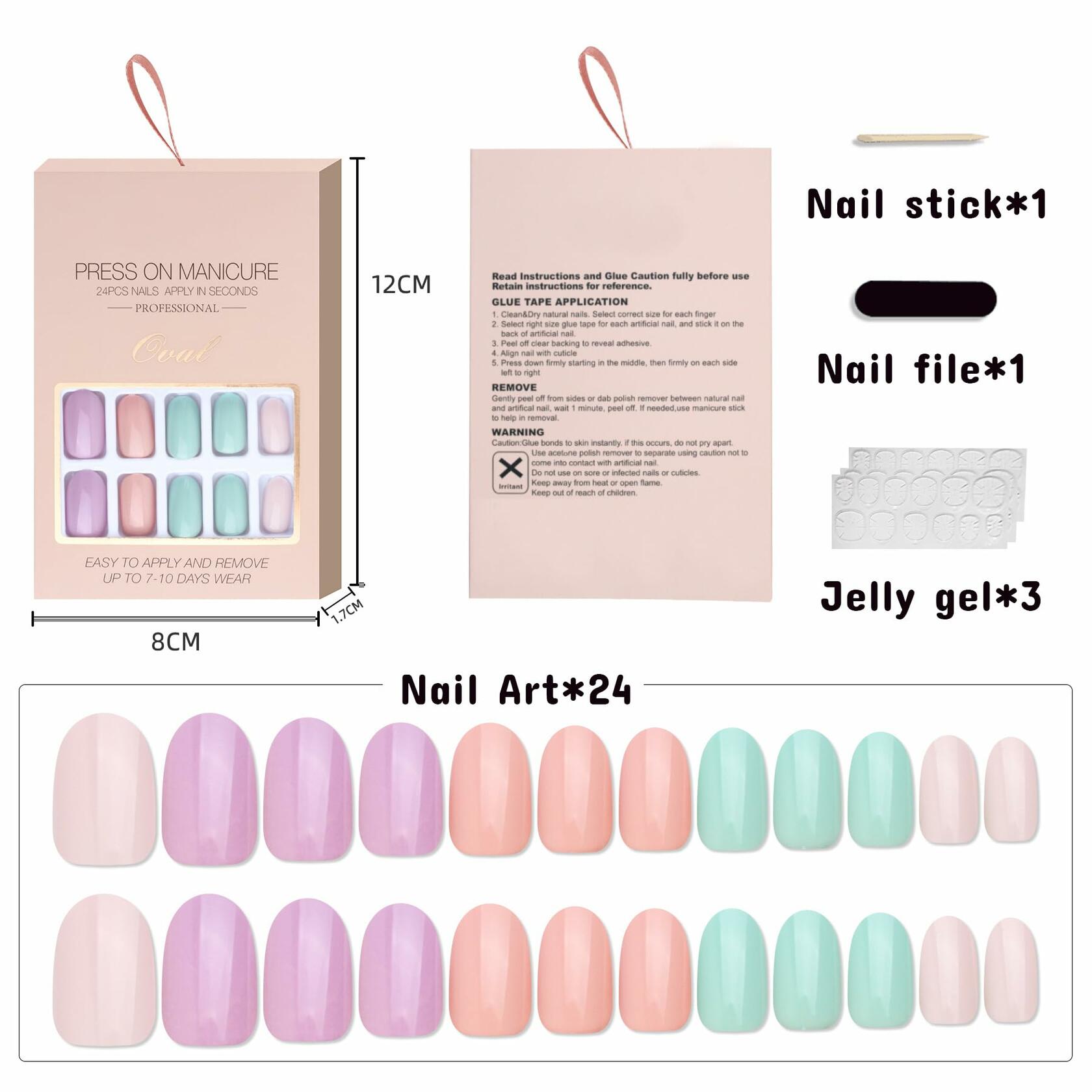 Press On Nails Short Square 24pcs Reusable Colorful Full Cover False Nails