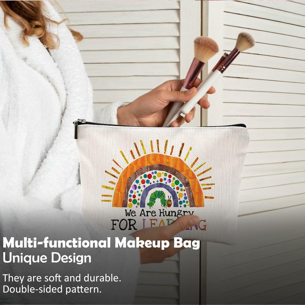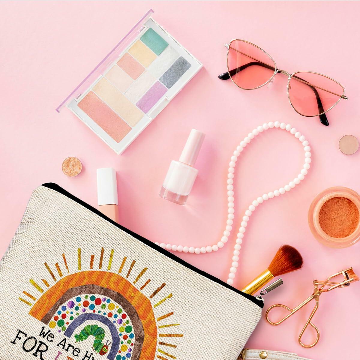 QGFM Teacher Makeup Bag Rainbow Cosmetic Purse Multicolor Travel Pouch