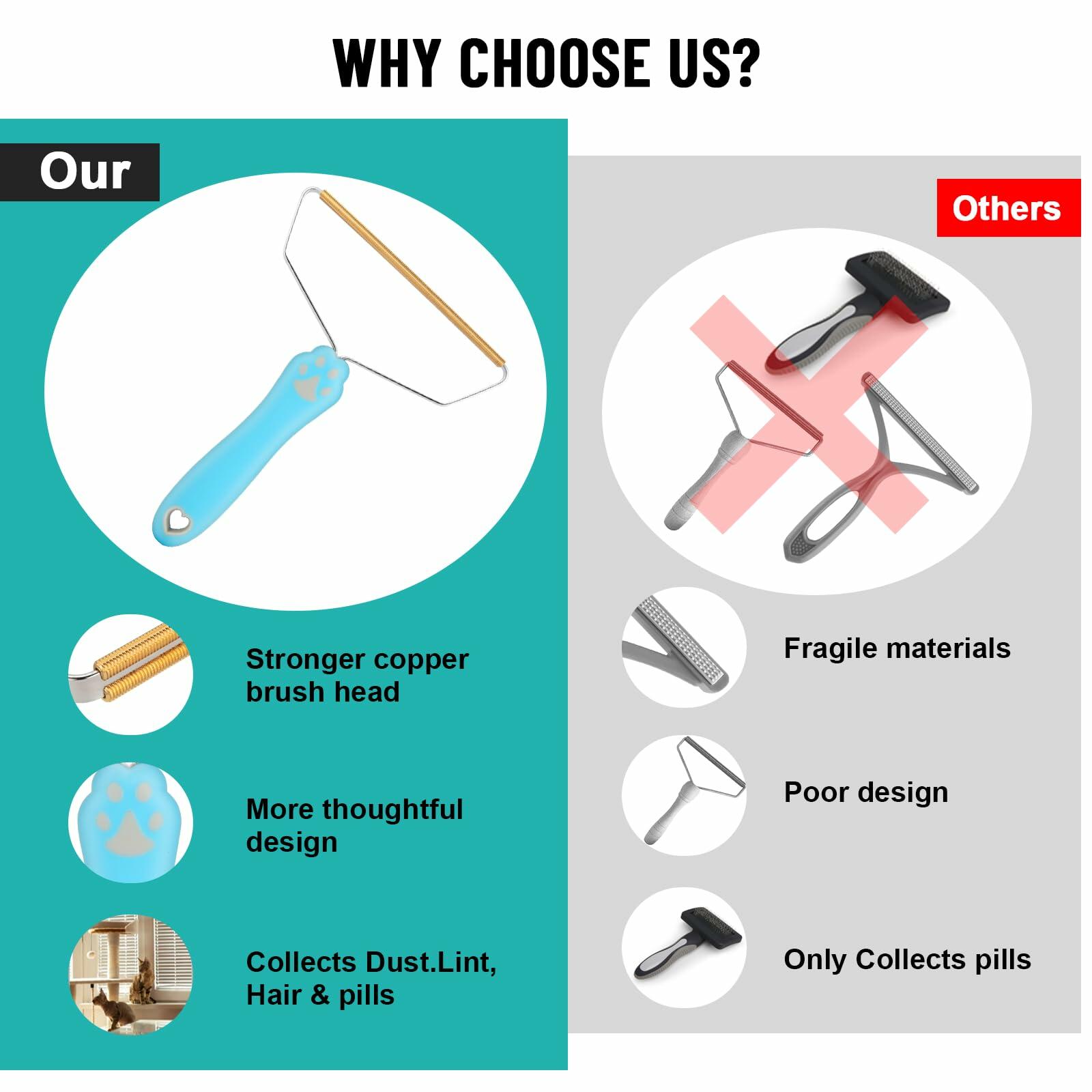- 【🐶Material Upgrade】-The spatulas of this cat hair remover furniture are made of pure copper for more efficient use. The frame of this dog fur remover is made of stainless steel, so it will be more durable and will not deform easily. The handles of this pet hair removal tool are made of ABS material, which is stronger than wood and feels better!