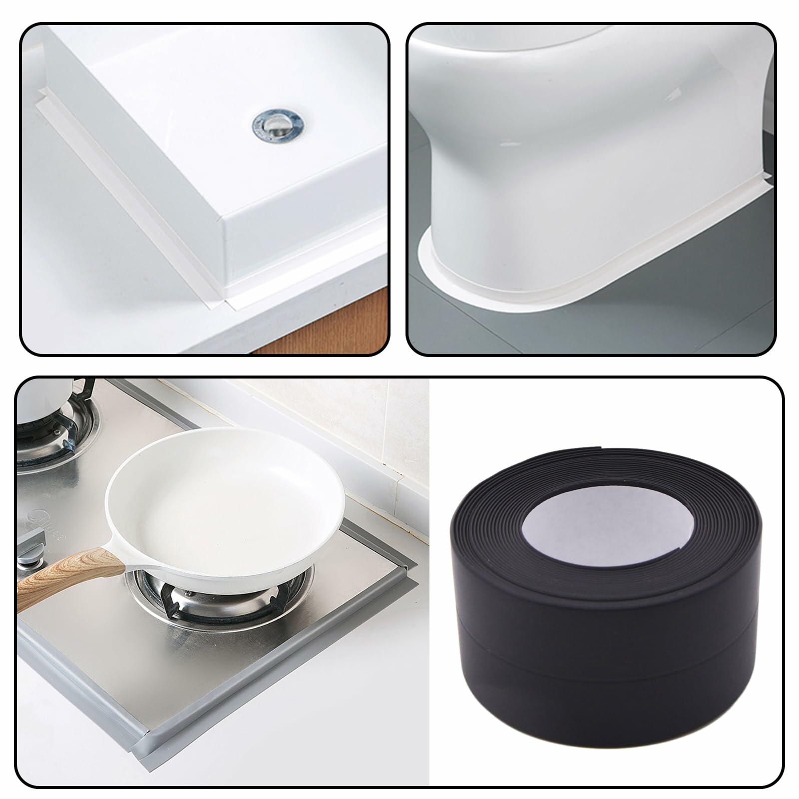 Qiveno 2pcs Waterproof Caulk Tape Black PVC Sealant for Kitchen Bathroom 10.5ft