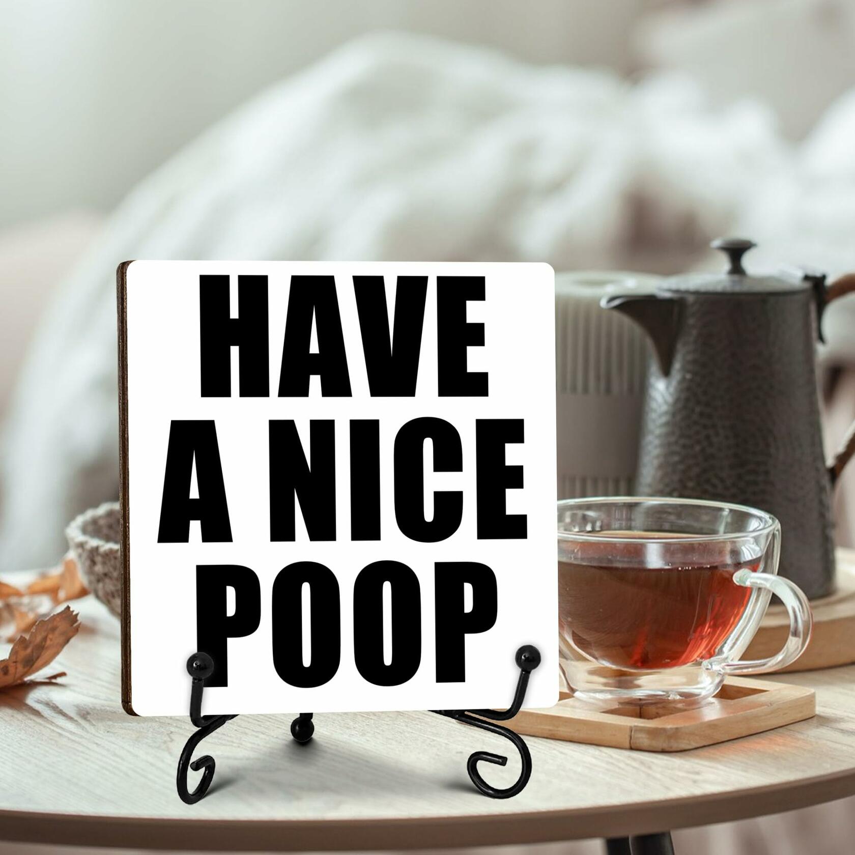 Qoamp Rustic Wooden Sign Have A Nice Poop 5x5 Inches White Tabletop Decor