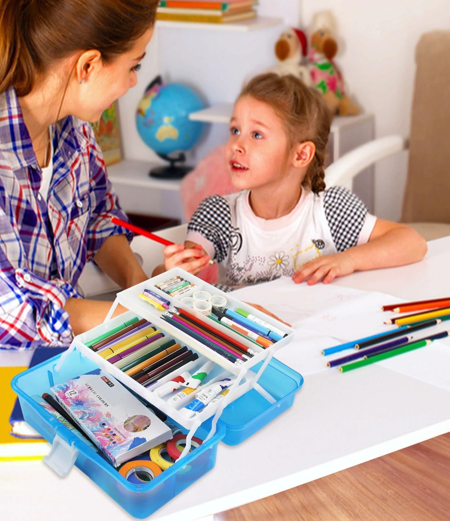 - Art Box Organizer: Large storage box with dust-proof lid and plastic lock, sealed and keep your items safe and neat. Perfectly works for adult or child, school supply organizer, art organizer for kids, pencil caddy.