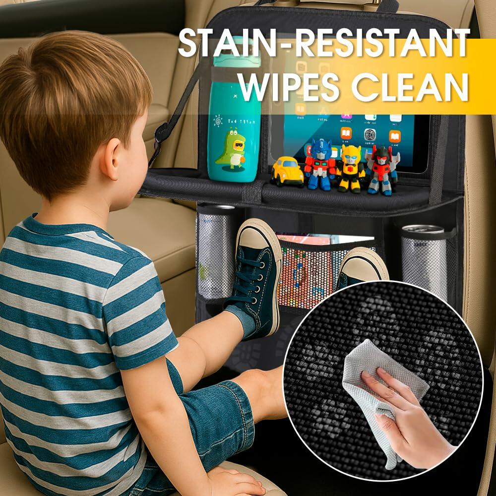 - 【Wipe to Clean】Made for messy moments, this car seatback organizer with trat is waterproof, stain-resistant, and scratch-proof. A simple wipe keeps your car seat organizer back seat looking fresh, no matter how chaotic the ride