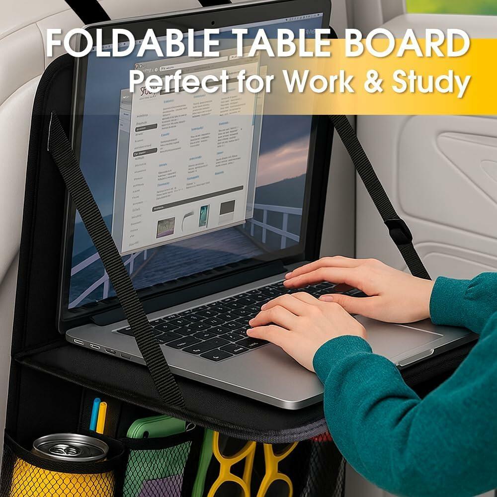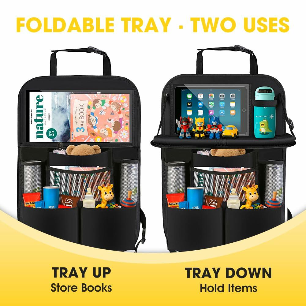 - 【Foldable Tray】This backseat car organizer with tray includes a foldable table that doubles as a car tray for kids or mini office for adults. Great for meals, games, or work. Fold it away when not in use to keep your car seat back organizer tidy and space-efficient