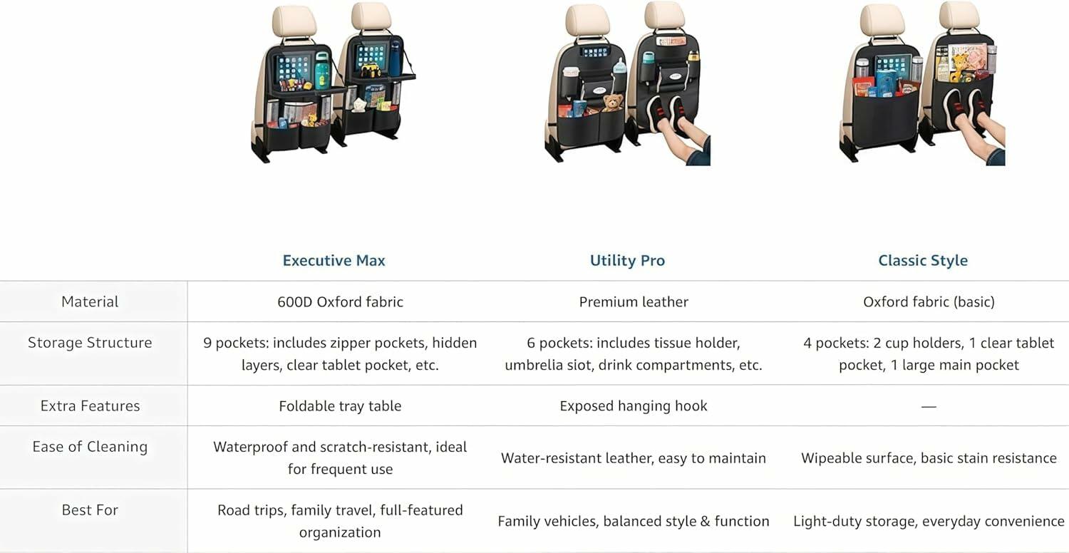 - 【3 Style Options】Choose from three Quiheat models to suit your lifestyle—whether you want a full car back seat organizer with tray, a slim profile baby car organizer, or a tech-friendly car seat organizer with tray, we’ve got the right fit
