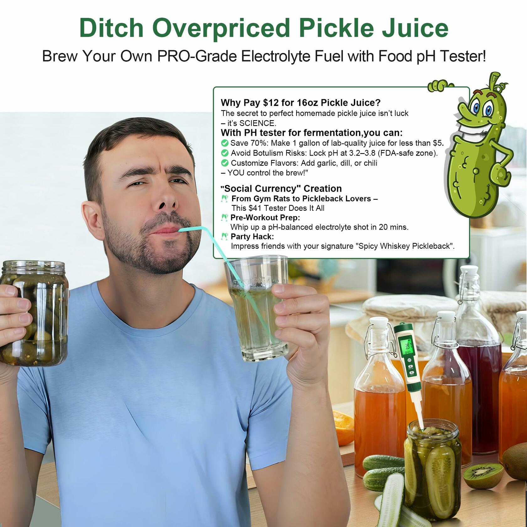- 【Perfect for Fermented Foods】:This pH meter is ideal for testing fermented foods like chili sauce, cheese, sushi rice, jam, and sourdough bread. Its unique spear-type probe with a glass bead sensor delivers accurate readings to monitor the fermentation process and ensure optimal conditions for your recipes.