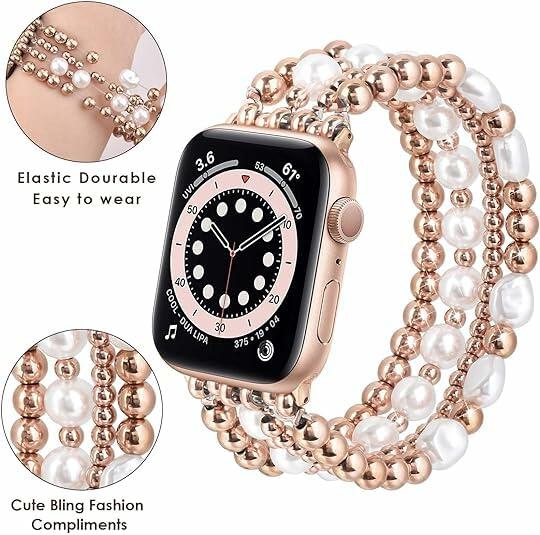 - Metal Beaded Apple Watch Bands Women: The dressy apple watch bands women are made of premium quality steel, shiny white crystal pearl and imported elastic stretchy string, luxury bling durable iwatch bands can make you get lots of compliments and cool the whole summer.