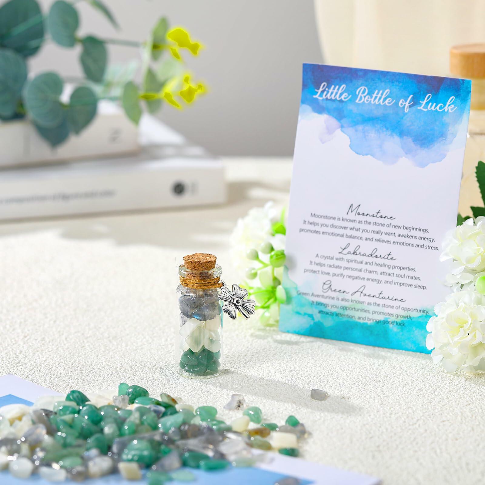 - Lucky Gift: each gem brings you different energy and good luck, helps you relax, relieve the stress, ties the four-leaf clover to the bottle mouth with a rope, and gives it to your family and friends as a lucky gift together with the card