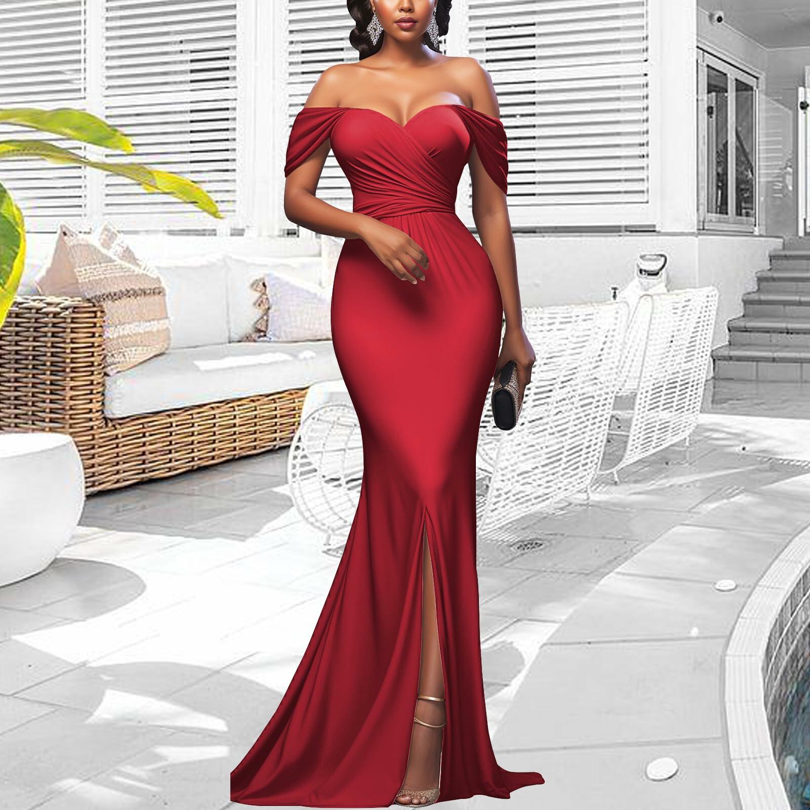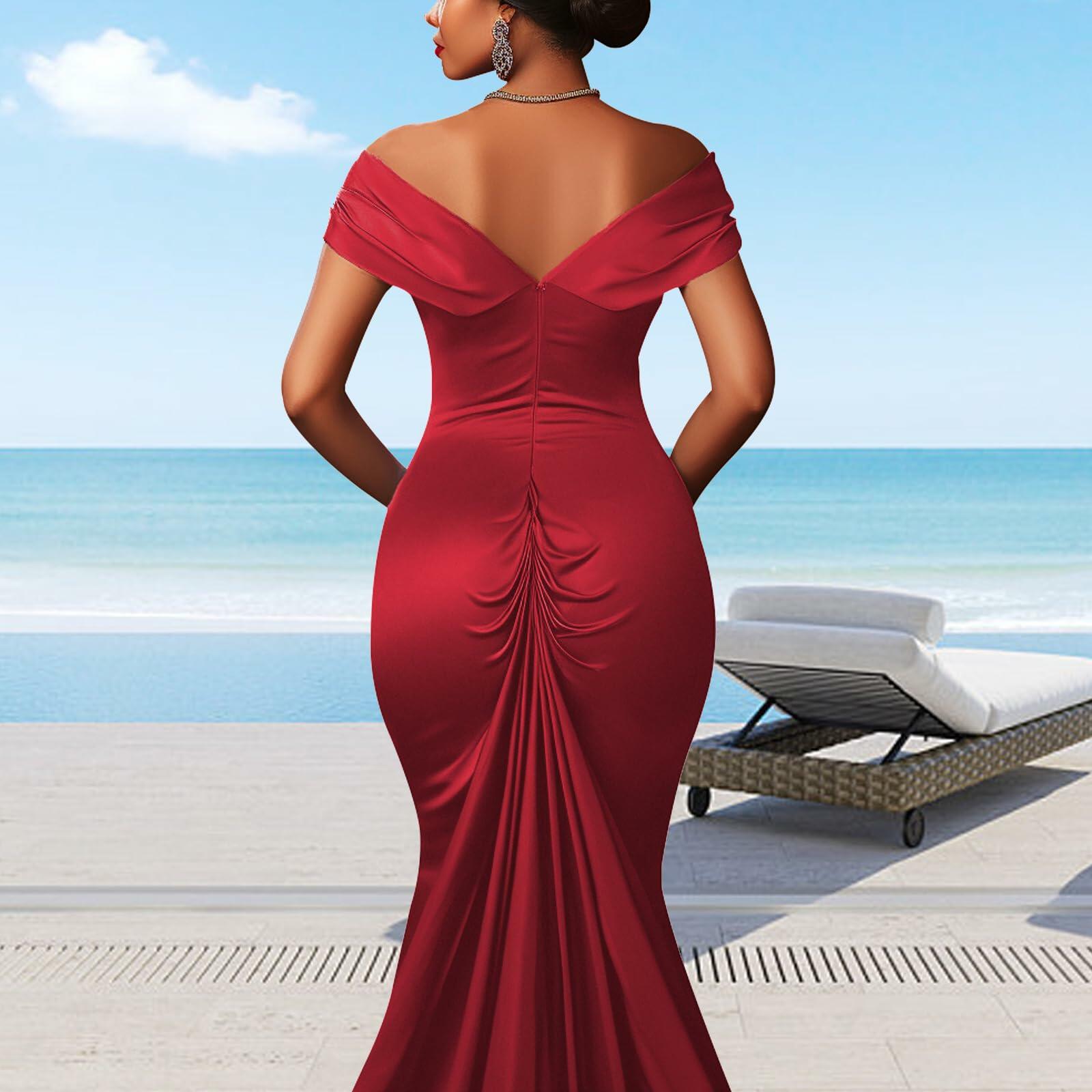 Red Elegant Off Shoulder Mermaid Maxi Dress Women Formal Wedding Size M
