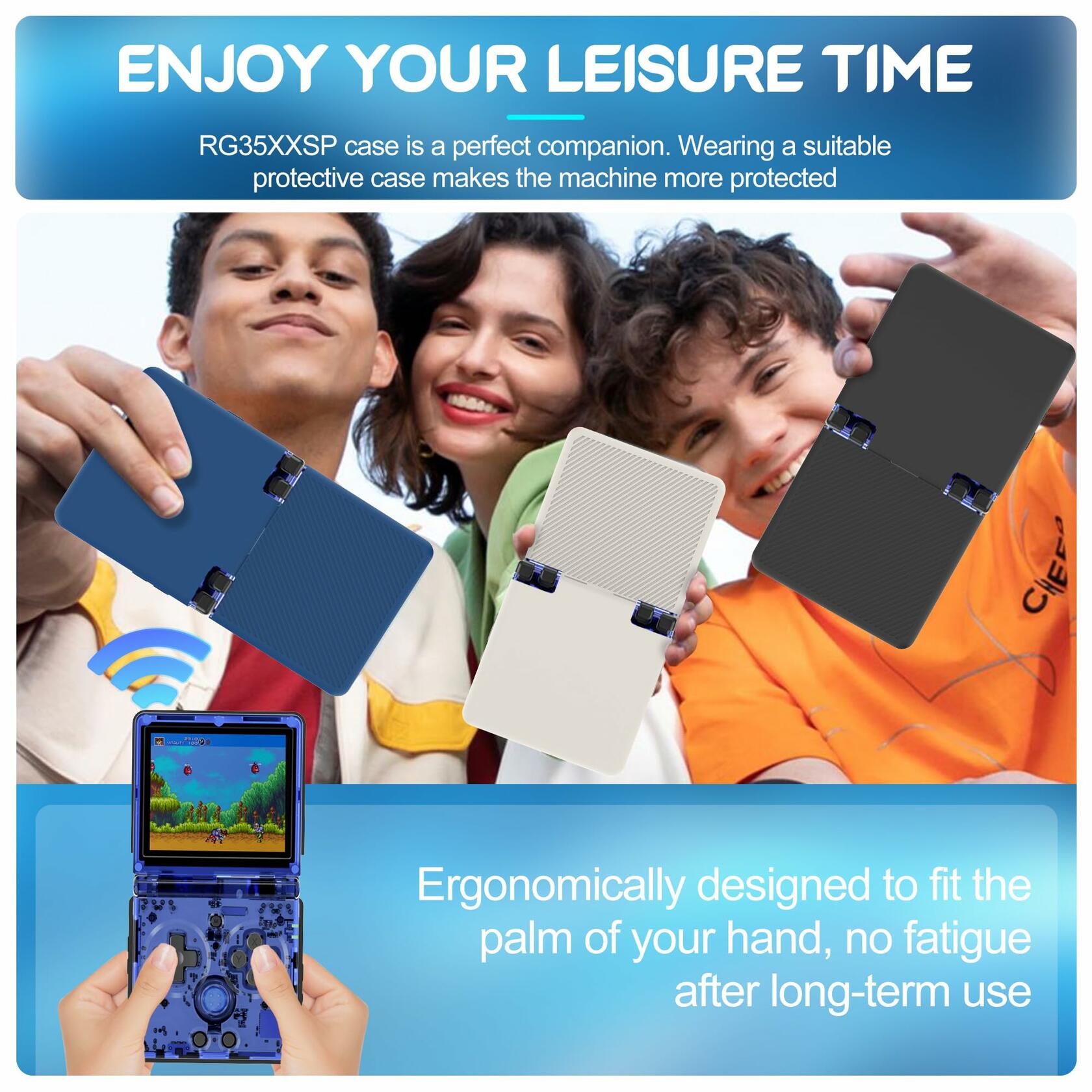 - DAILY PROTECTION: The silicone cover of RG35XXSP retro handheld game console minimizes daily wear and tear and prevents them from colliding with each other. It not only avoids collisions, drops, and scratches but is also anti-fingerprint and anti-sweat.
