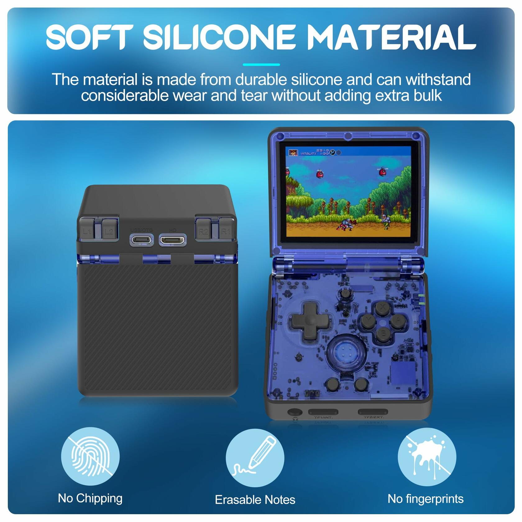 This RG35XXSP case is made of durable silicone and boasts an anti-fingerprint coating to prevent oil smudges and simplify cleanup. Enhances portability and simplifies installation.