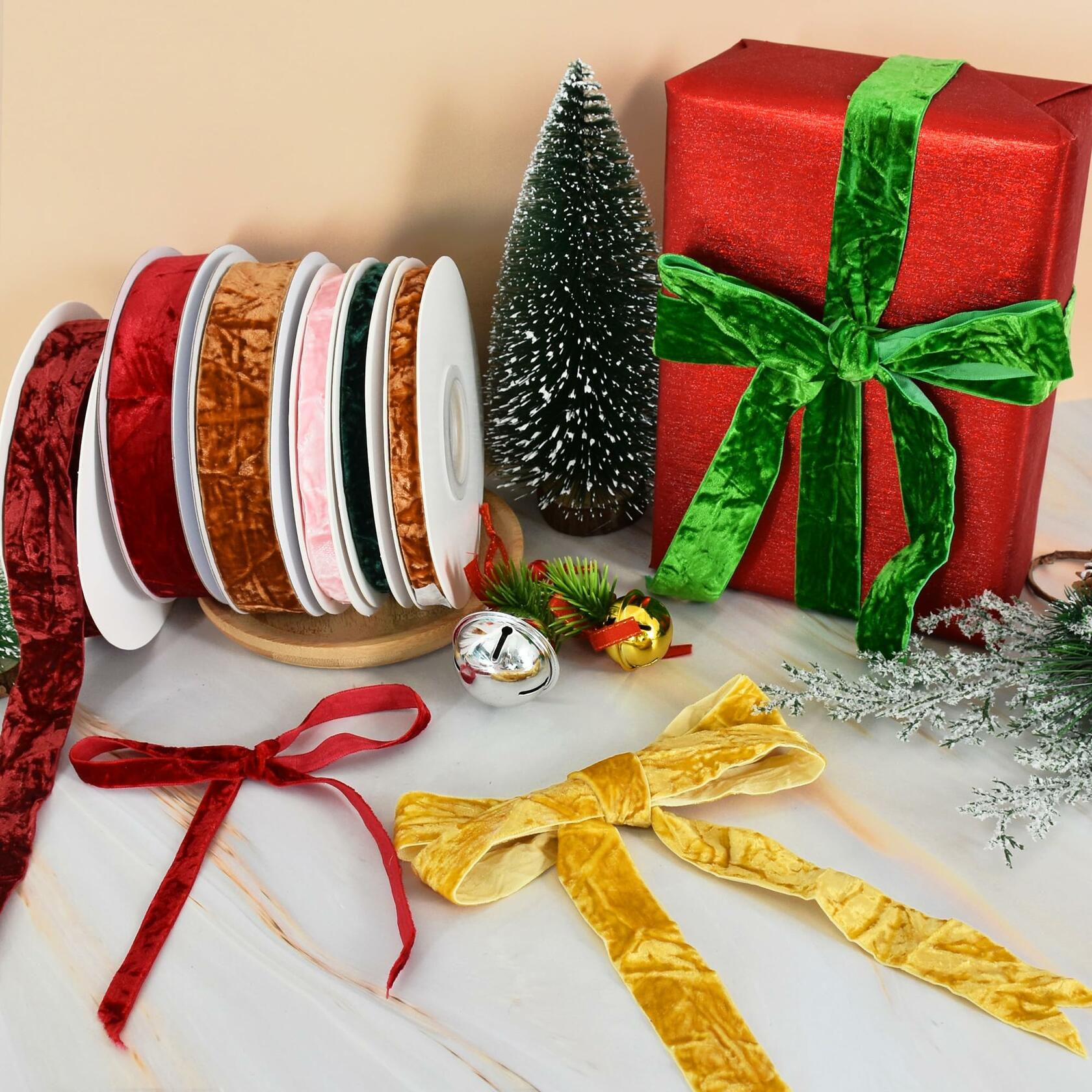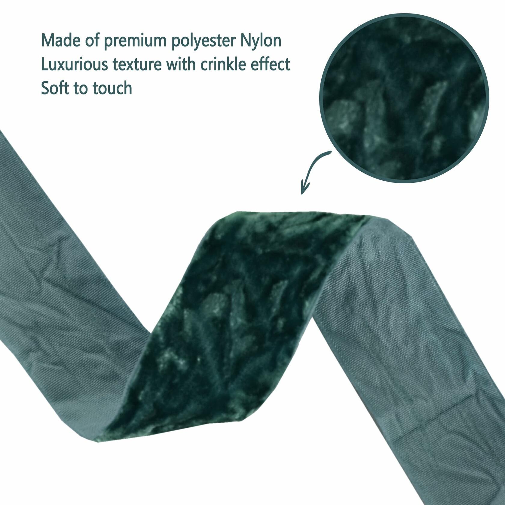- 【 MATERIAL】 Made with polyester nylon material, soft and with shiny lustrous surface, bright and vivid colors. The crinkle velvet texture captures a serene luxurious, ideal for crafting small bows, adorning wreaths, Christmas tree decoration, and enhancing your elegant decoration creations.