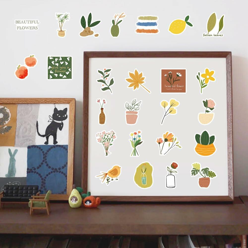 riduk 124Pcs Boho Floral Vinyl Waterproof Stickers for Journaling DIY Decor