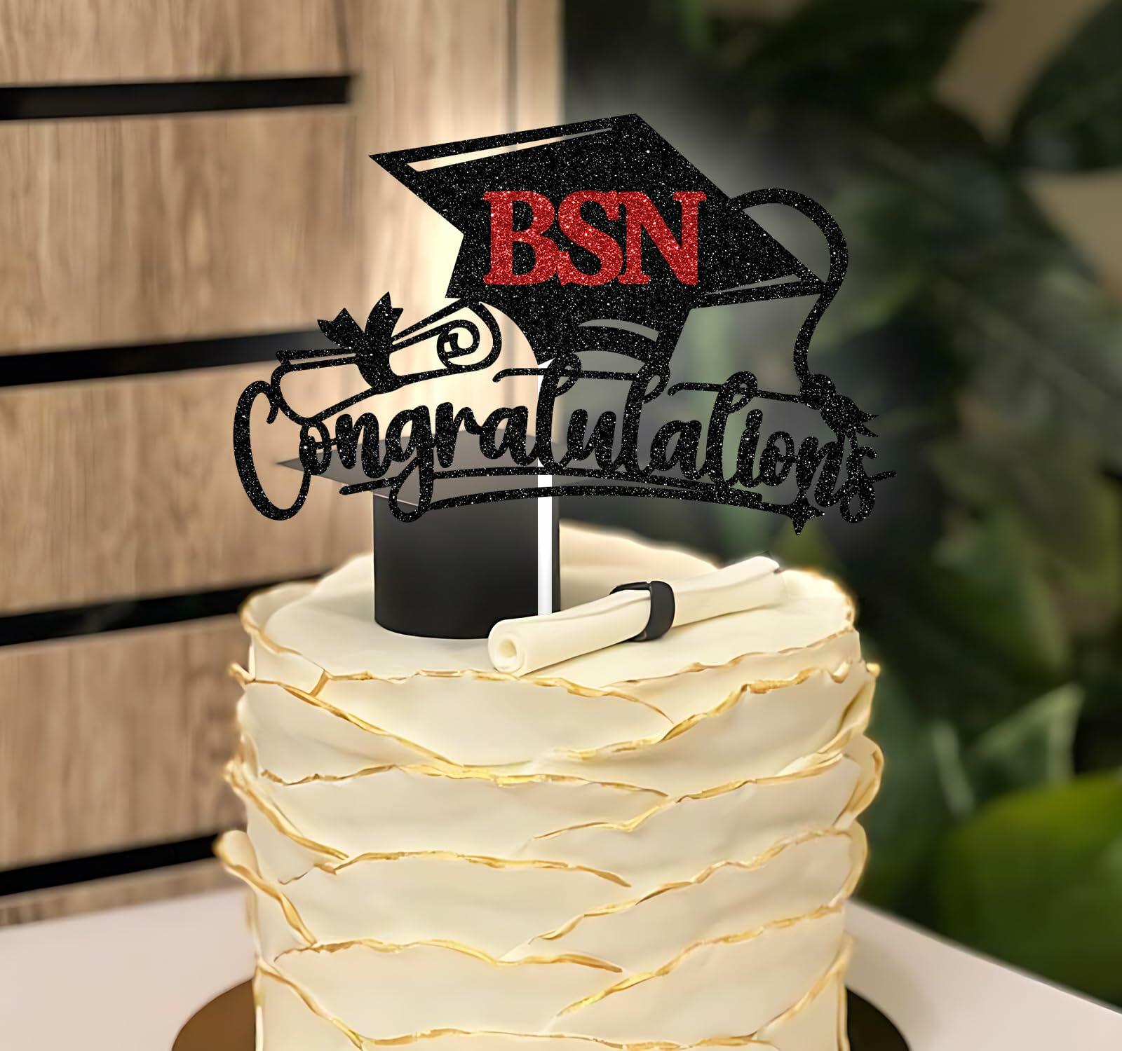 - Package Contents: 1 piece of multi-color glitter cake topper(Congratulations BSN), and a white cardboard, which can be used for your upcoming 2025 congrats BSN/nursing school survivor graduation celebration.
