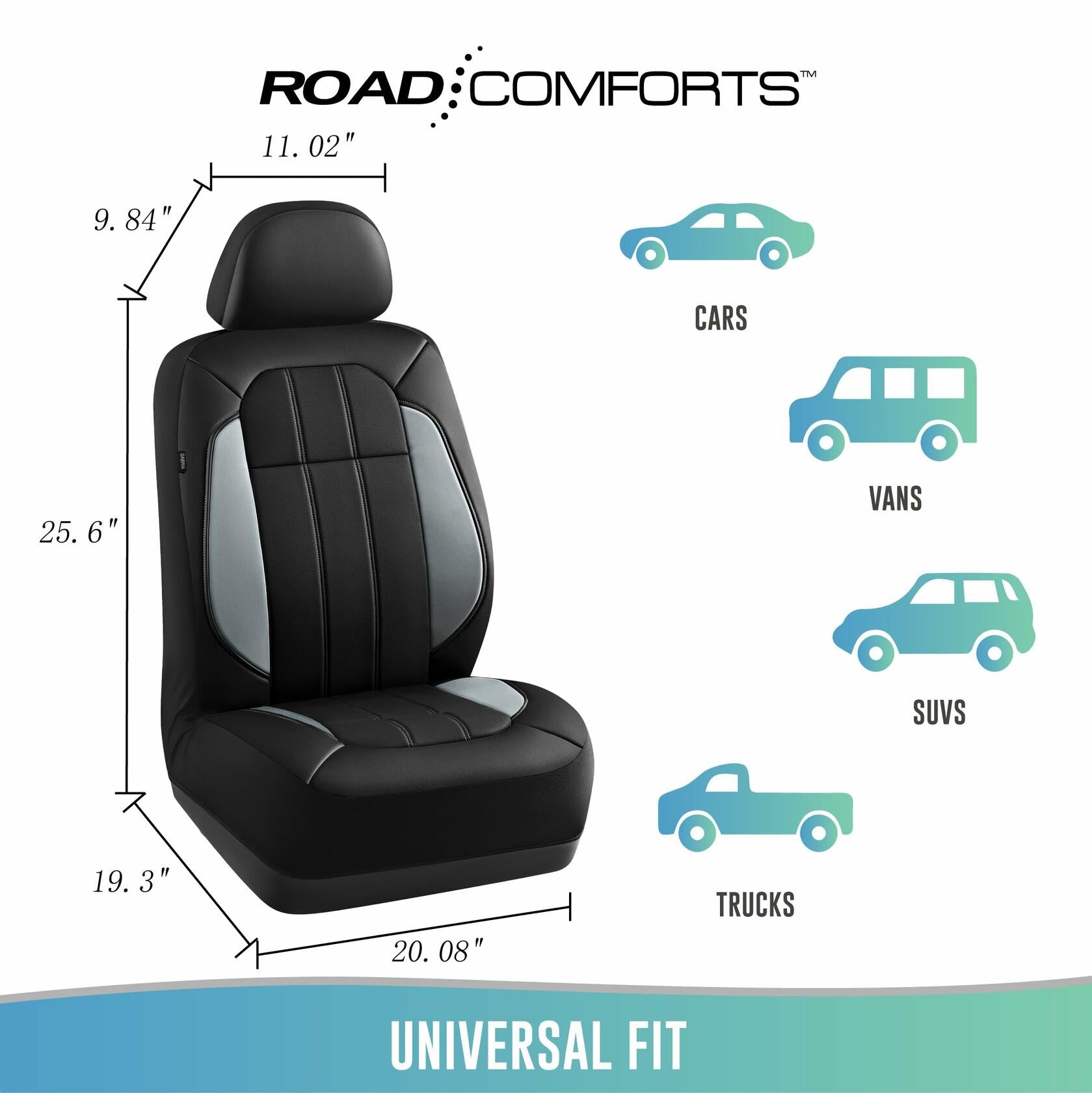 Road Comforts Breathable Leather Car Seat Covers Front Seats Airbag Safe Gray