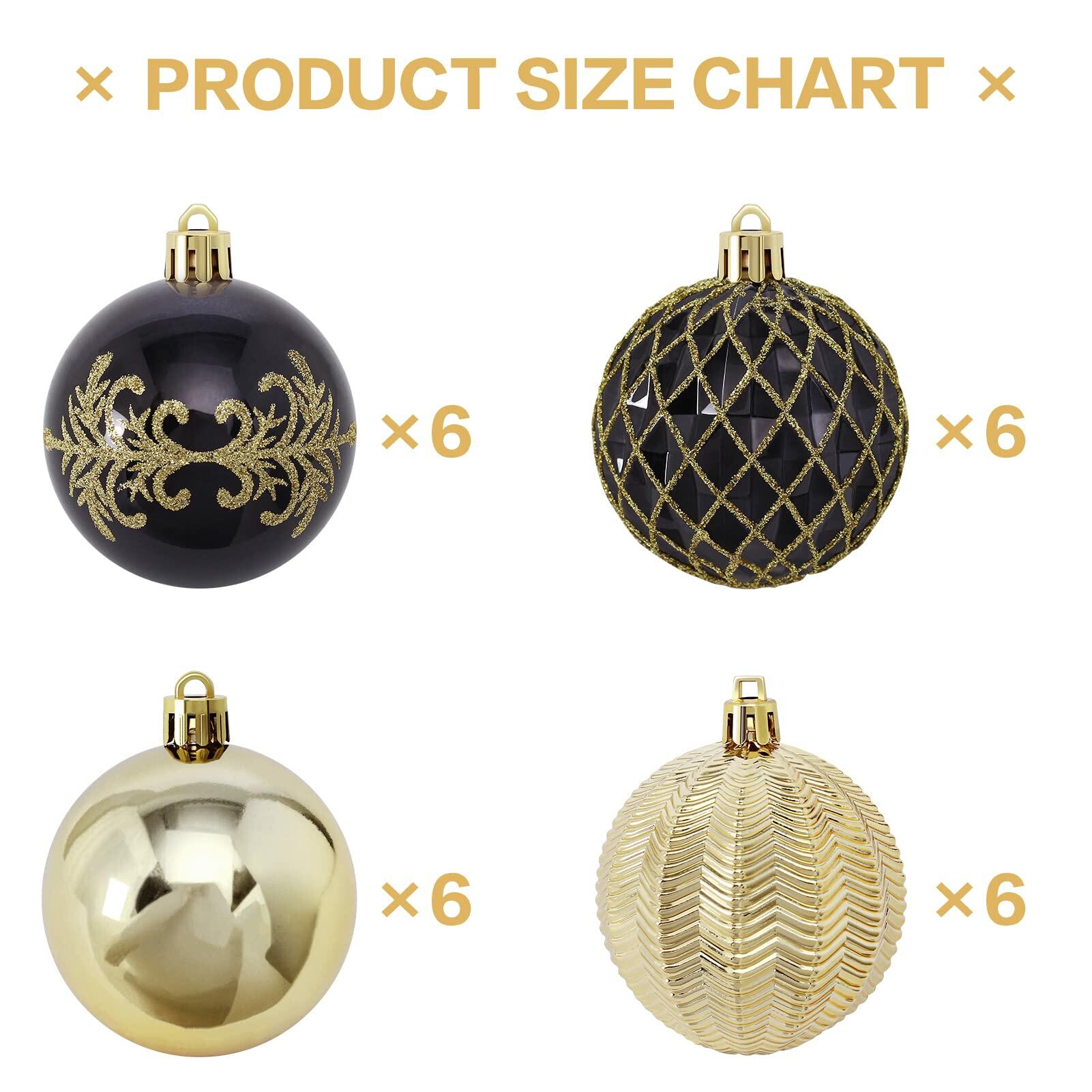 RoseCraft 60mm Hand-Printed Christmas Ball Ornaments Set 24PCS Black/Gold