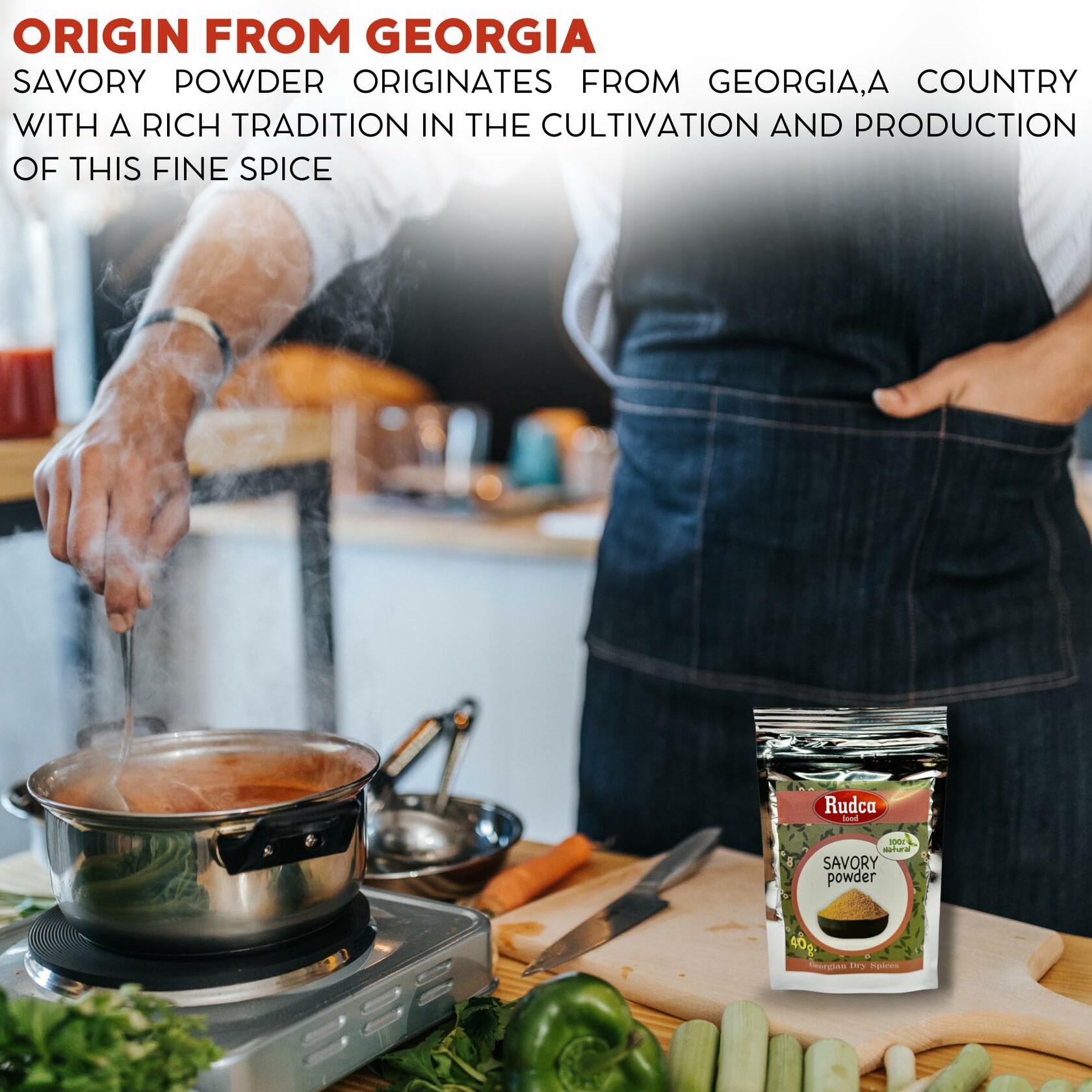 Rudca Food 100% Natural Savory Powder is a unique spice that brings the rich heritage of Georgian cuisine right into your kitchen. Crafted from 100% natural ingredients, this powder contains no additives or preservatives, ensuring that you receive only the purest spices for you and your family to enjoy. Produced in Georgia, this Savory Powder is made using traditional methods and recipes that have been passed down through generations. This authenticity guarantees a rich and aromatic flavor that enhances a variety of dishes, making it a staple for any home cook. Versatility is one of the standout features of this spice. It is perfect for a wide range of dishes, including meats, vegetables, soups, and stews. Simply add a pinch of Savory Powder, and watch as your meal transforms into a culinary delight with new and exciting flavors. Each pack is filled with high-quality spices, offering a rich and unique taste that will elevate your cooking. By incorporating this seasoning into your recipes, you add an authentic touch that sets your dishes apart from the rest. Rediscover the joy of cooking and bring the warmth of Georgian flavors to your table with Rudca Food Savory Powder, making every meal an occasion to remember!