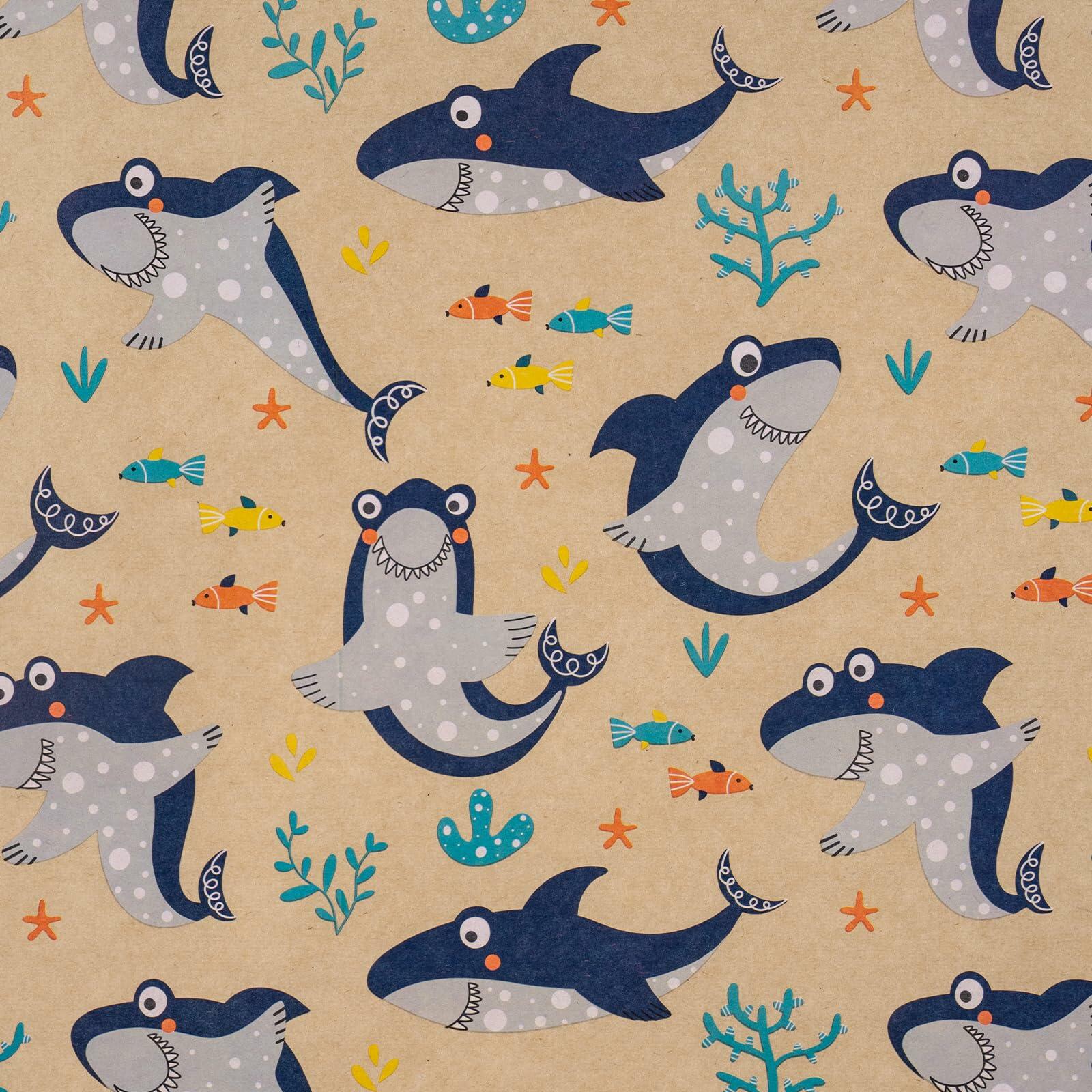 - FEATURES: Kraft wrapping paper printed cute shark in the ocean, make the gift wrapping be more eye-catching