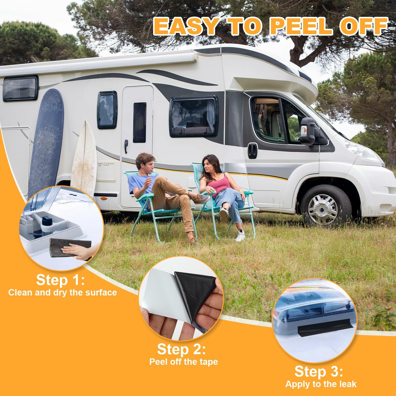 - EASY TO USE: The roof tape is designed for ease of use, helping you tackle repairs without hassle. No extra tools or messy liquids are needed, simply apply the tape to a clean, dry surface and press firmly to ensure a secure bond. This straightforward application is perfect for RV owners who value quick, efficient solutions to keep their adventures on track and their vehicles in great shape.