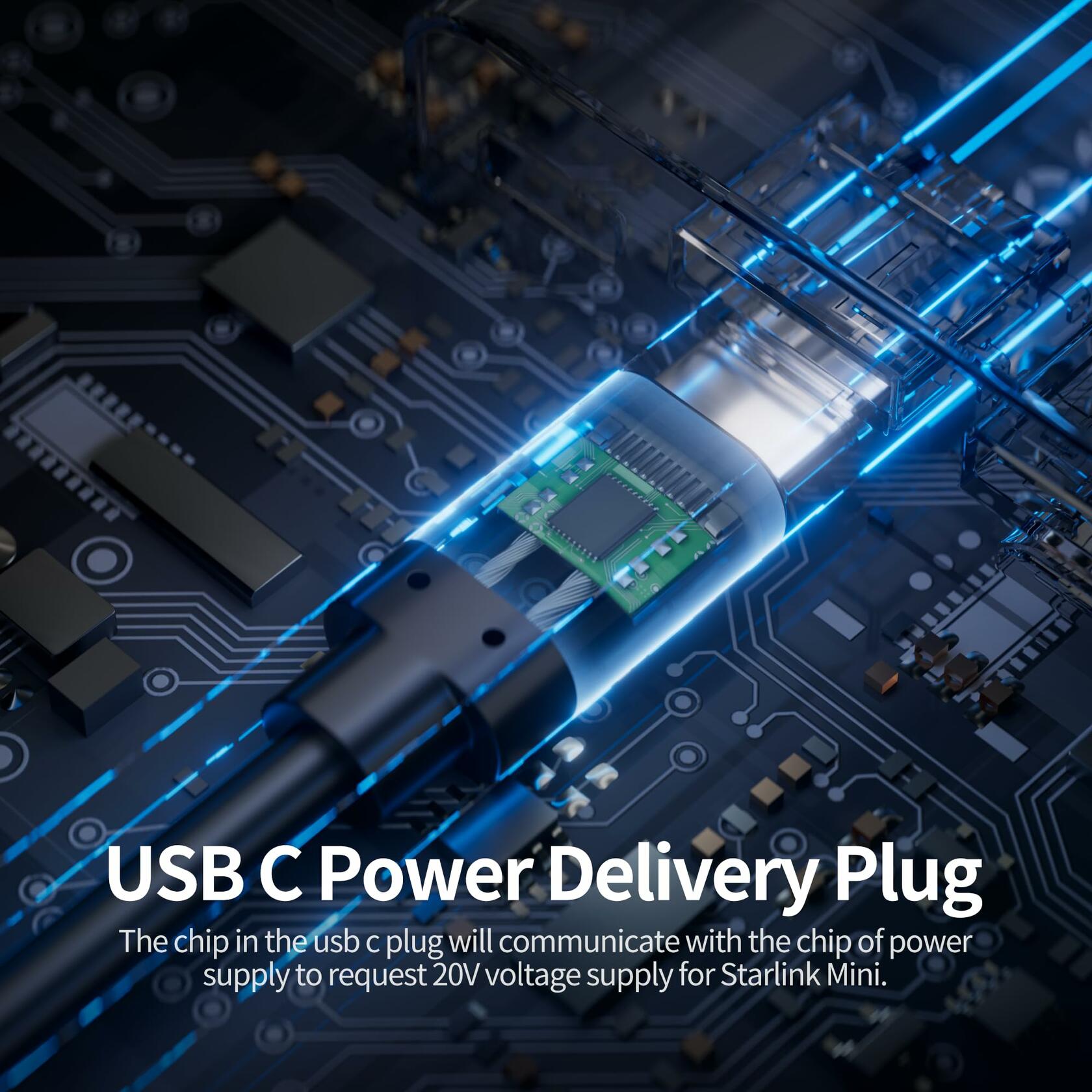 RVMARINEPAT Starlink Mini USB C to DC Power Cable 2M Waterproof Black