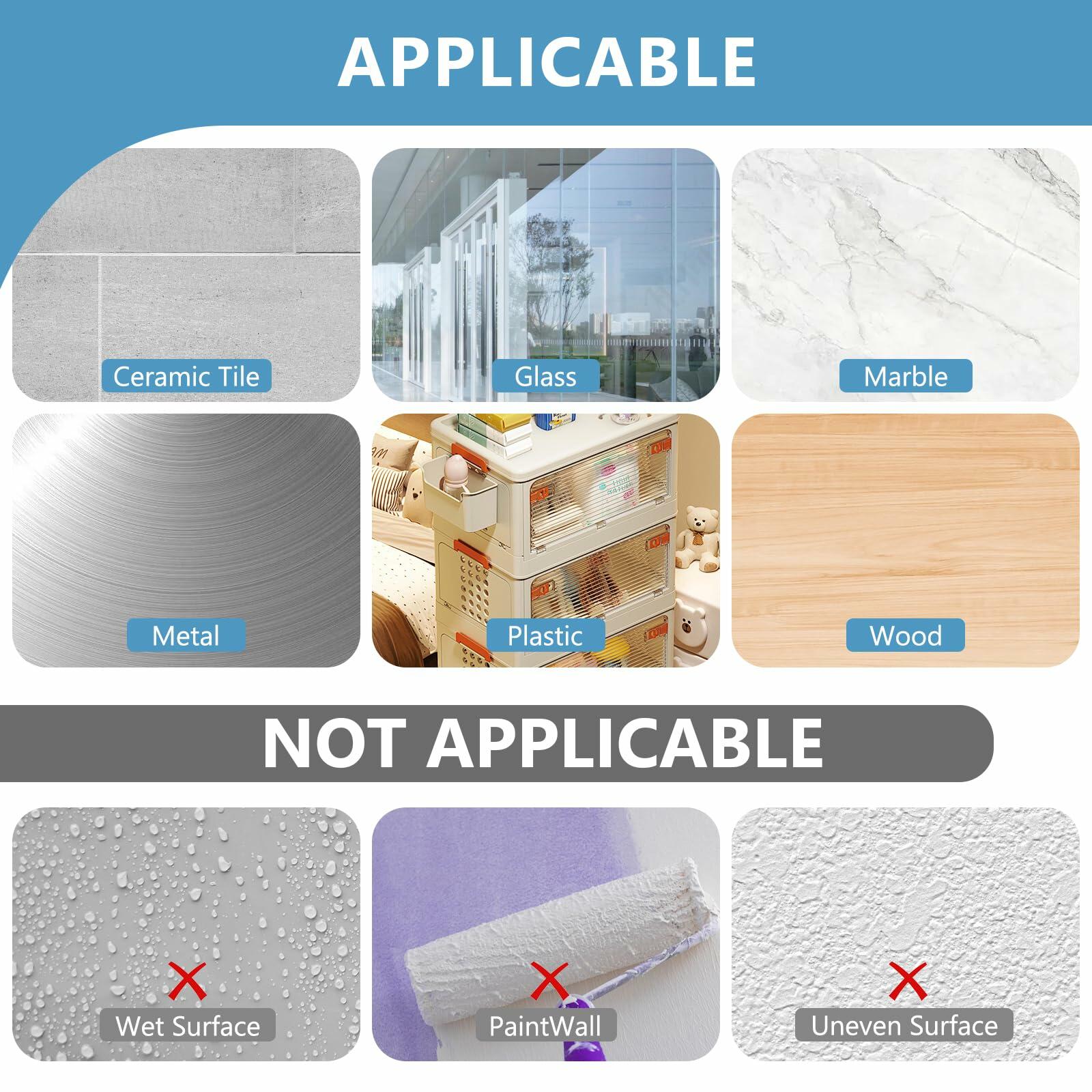 - [Applicable surface]: Double sided tape is very suitable for glass,metal,plastic, wood,leather,ceramics,paper,and most smooth surfaces,please do not use on textured walls,painted wall,uneven surface,wet surface,greasy surface.