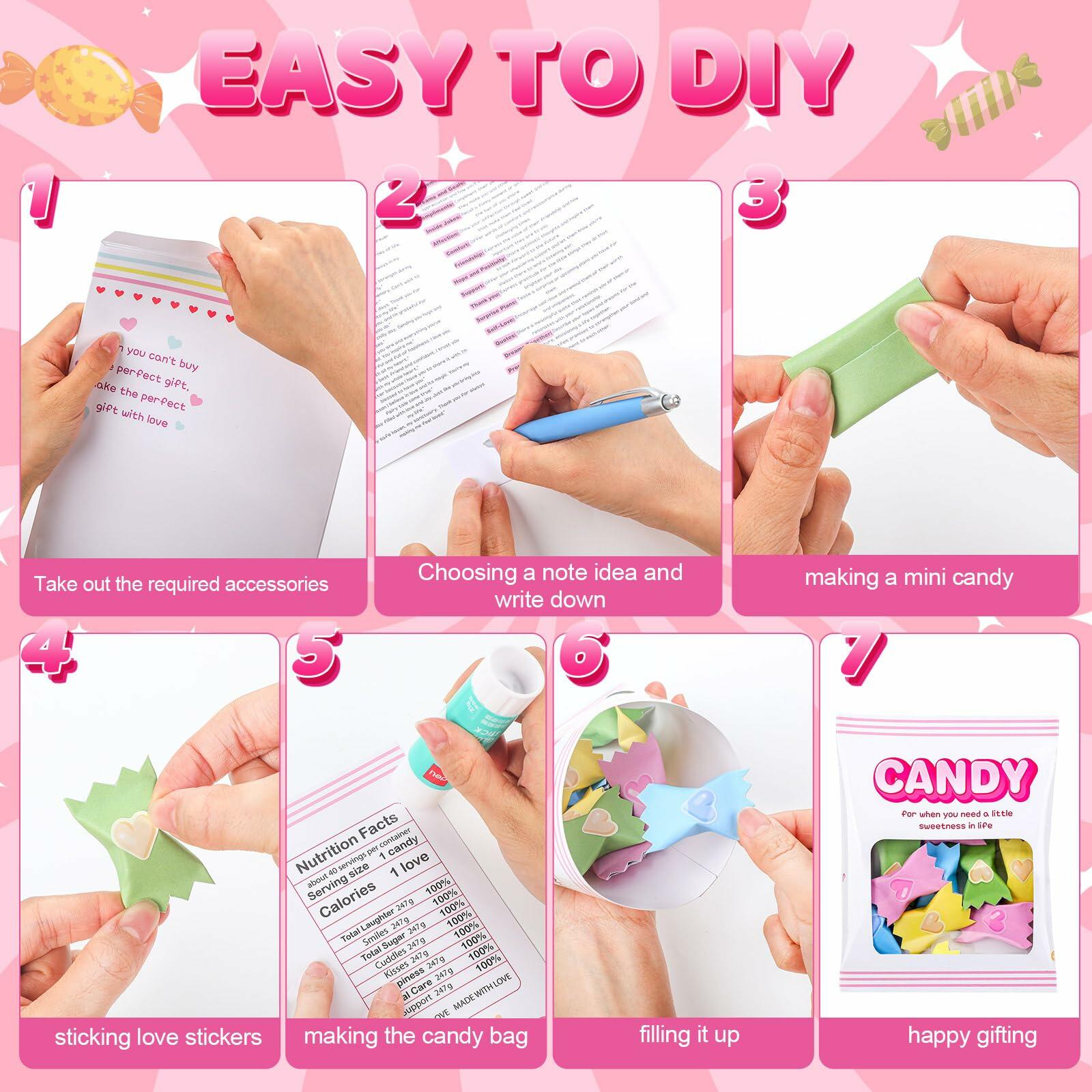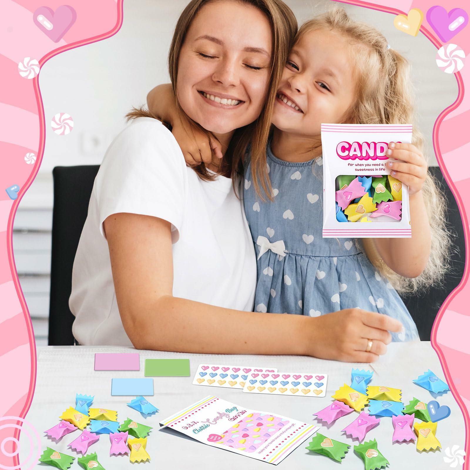 - Candy Gift Set: this classic candy bag gift kit provides rich materials, including 1 candy gift bag, 24 mini message cards, 24 colorful candy wrappers, 42 mini heart stickers, 1 clear candy bag, allowing you to easily create personalized candy bags and enjoy hands-on fun