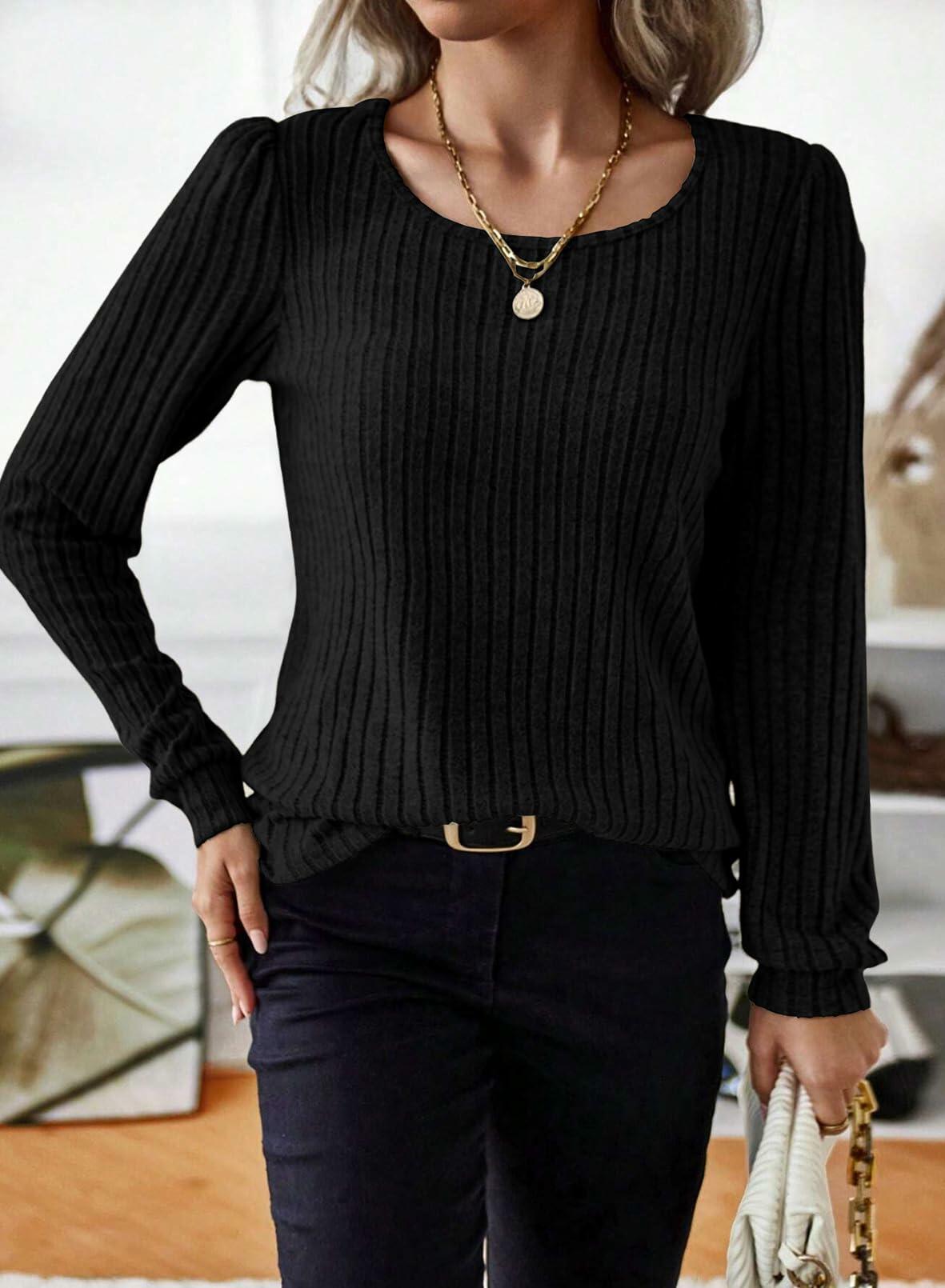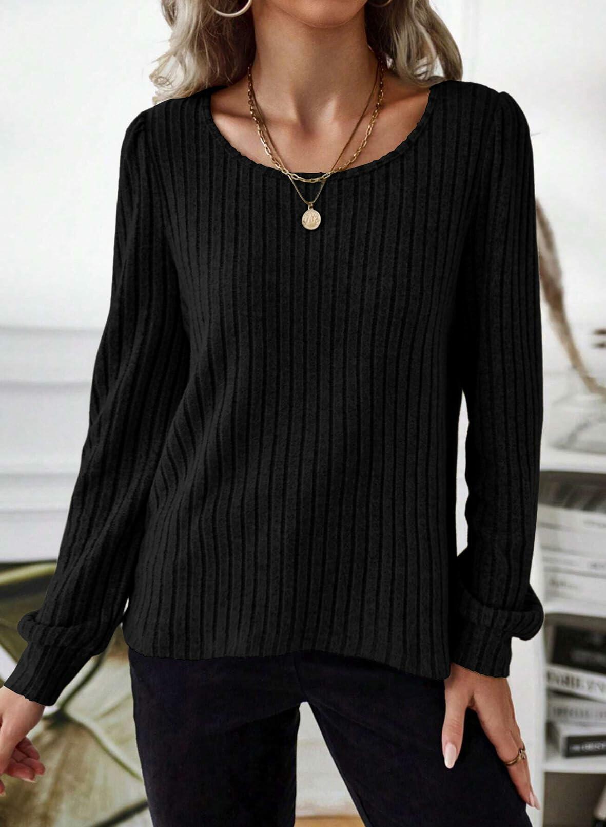 - Unique Design: Round Neck Tops, Long Sleeve, Knitted, Basic Fitted, Stretchy Ribbed Hemline, , Solid Color, Regular Fit, Casual Style