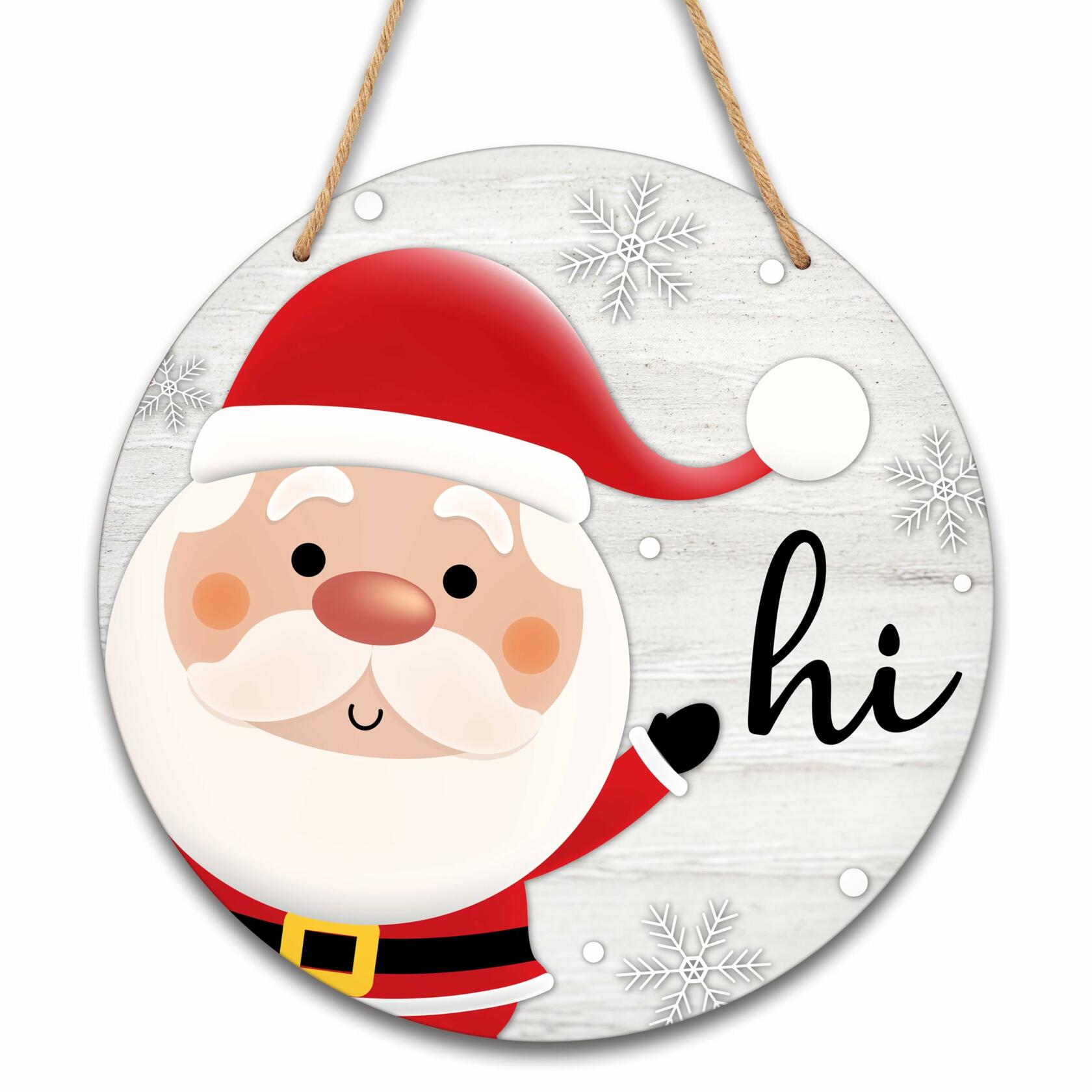 Santa Welcome Sign 8" Round Wood Hanging Plaque Christmas Decor A10