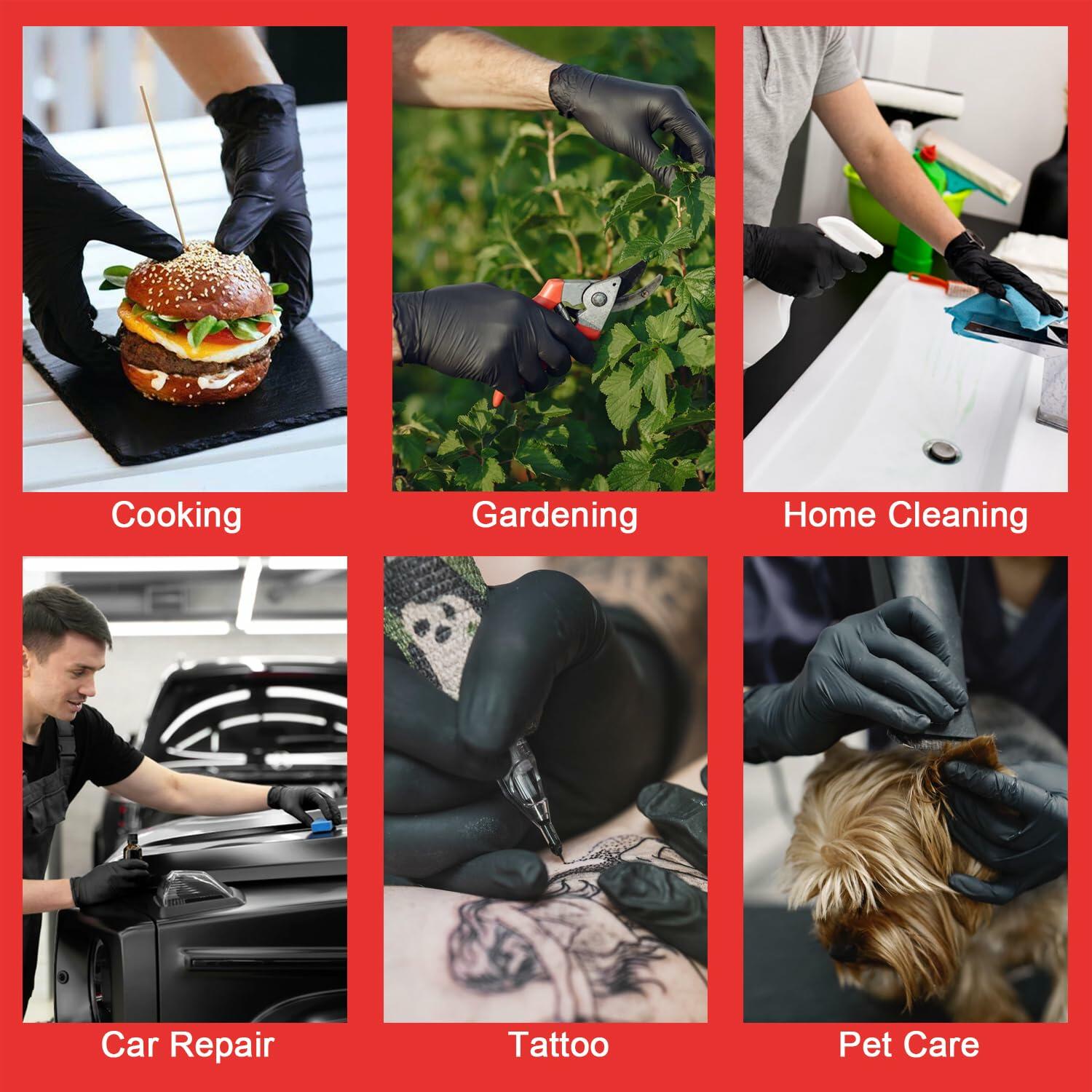 - 【Protect Your Hands】Gloves disposable latex free are ideal for those allergic to natural rubber,you wear your gloves for an additional layer of skin for your hands during work,they're excellent sense of touch and feel thru the material,nitrile gloves leave your hands away from liquids, oil, slip, gases, and sharp objects.