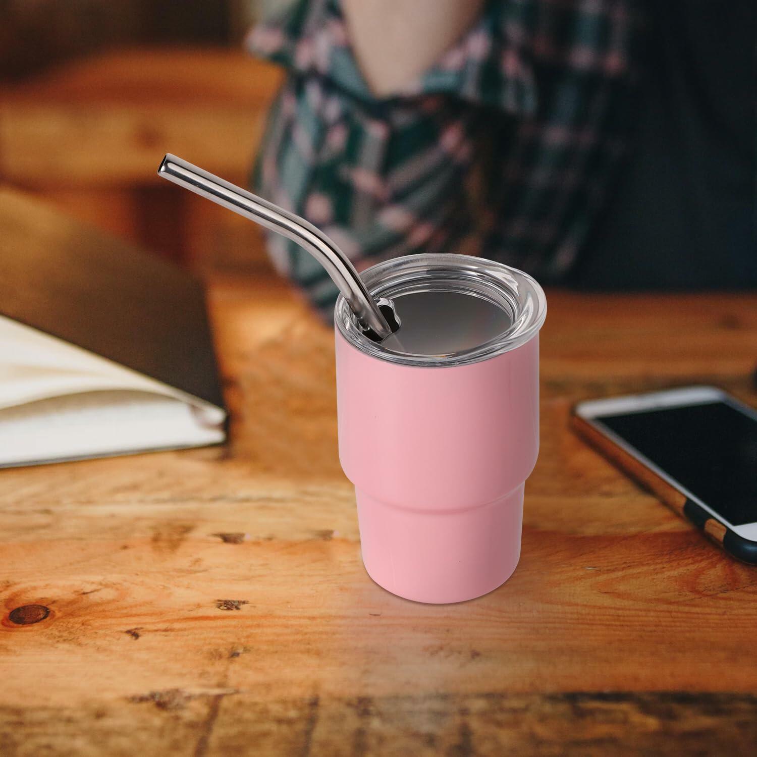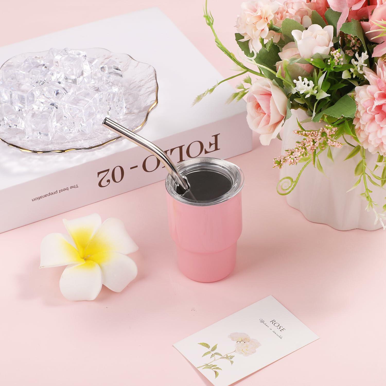 SAVITA Mini Tumbler Shot Glass Set 3oz Pink Stainless Steel with Lids Straw