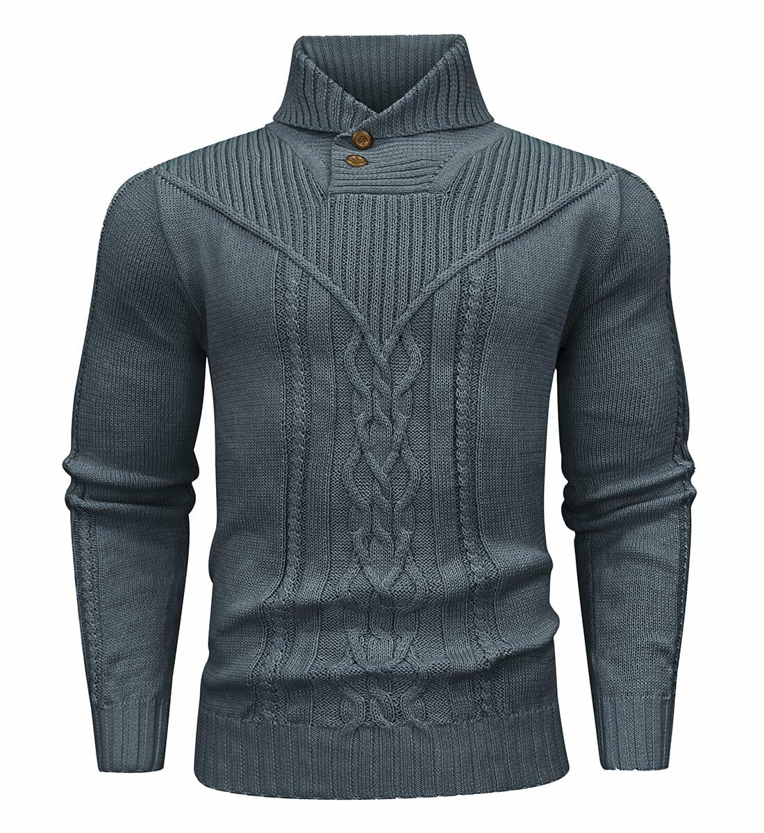 SAVKOOV Men's Shawl Collar Cable Knit Pullover Sweater Deep Gray Size 3X-Large
