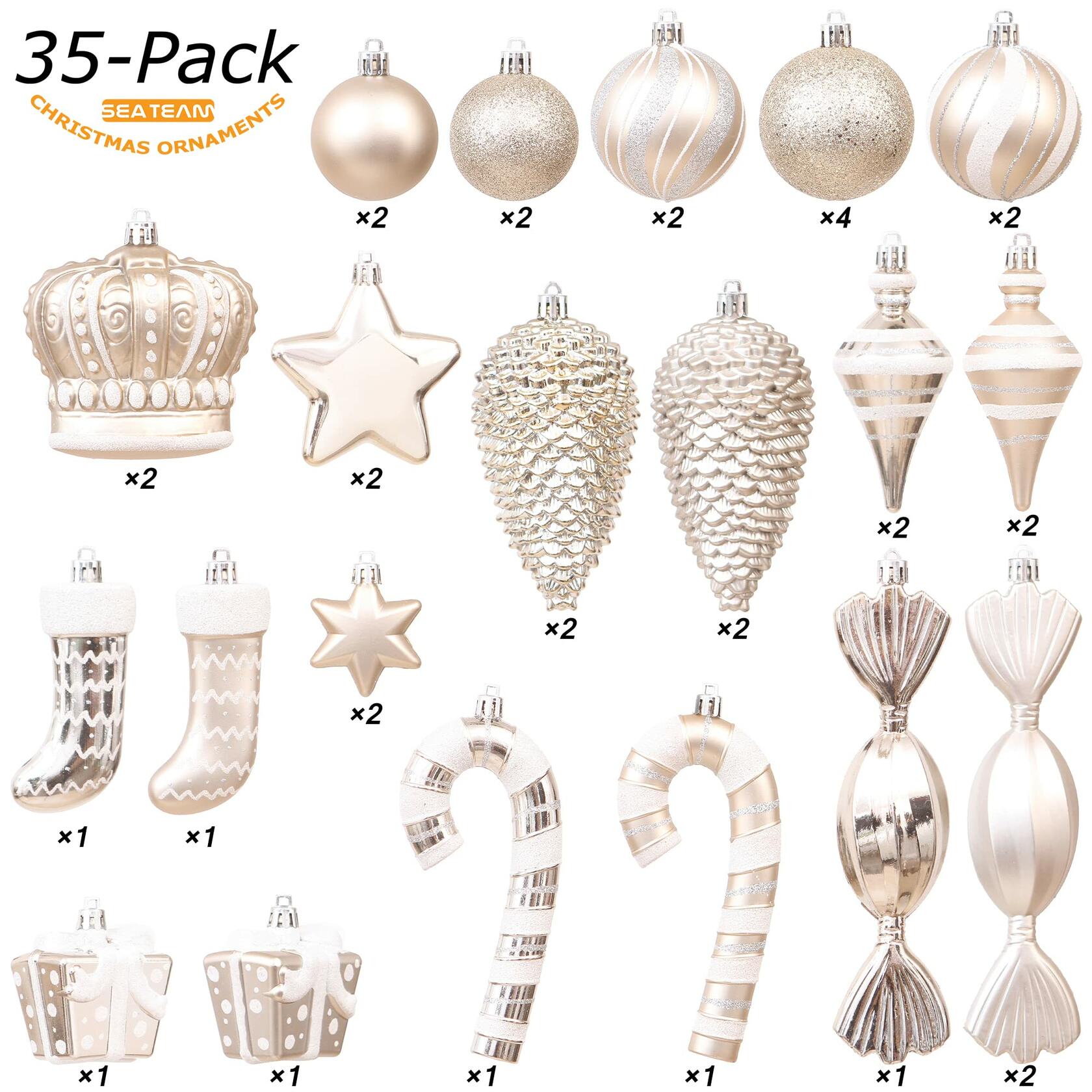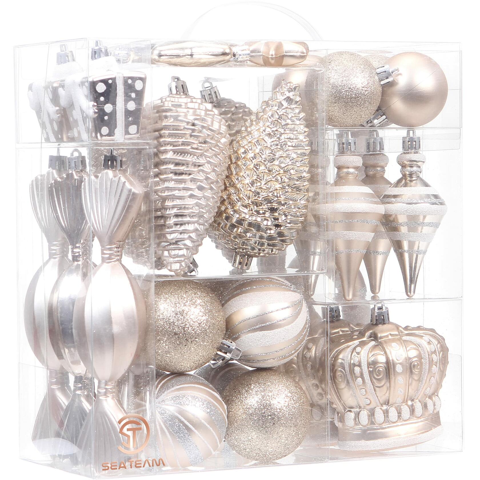 Sea Team 50-Pack Assorted Shatterproof Christmas Ball Ornaments Set Champagne
