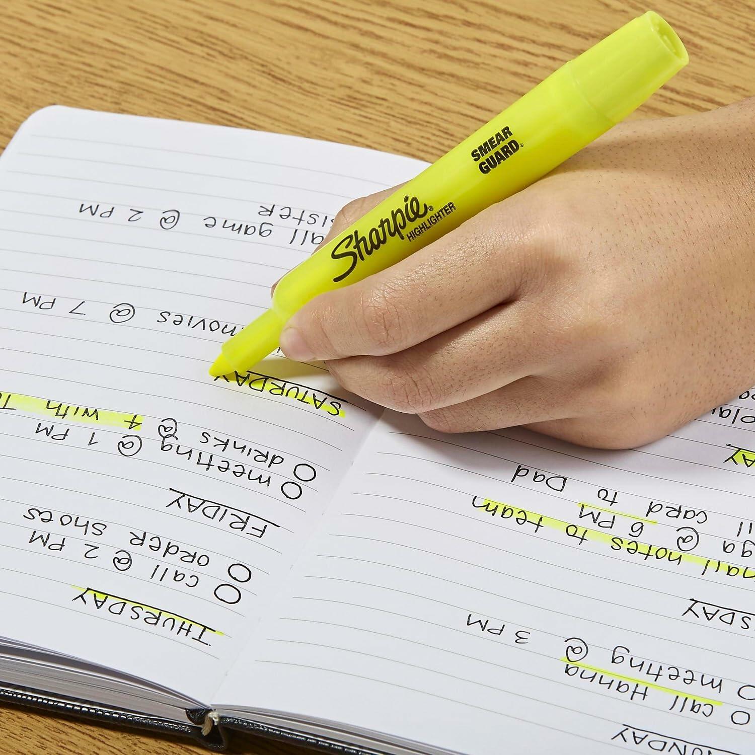 - Sharpie Tank Highlighters with wide barrel and large ink supply that delivers dependable highlighting