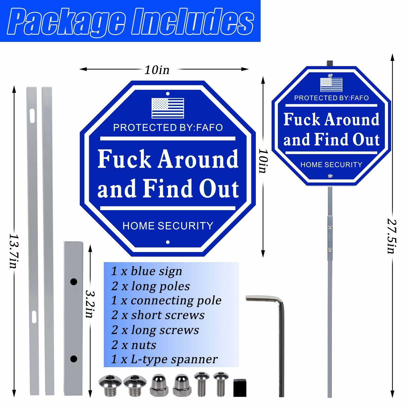 Shawgge FAFO Security Yard Sign with Stake Blue Metal Property Decor
