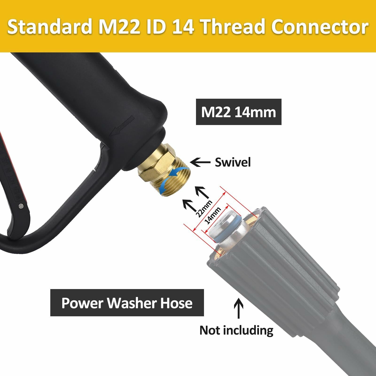 Pressure Washer Swivel Gun with M22 Inlet-14mm & Water Handle with 1/4” Quick Connector Coupler