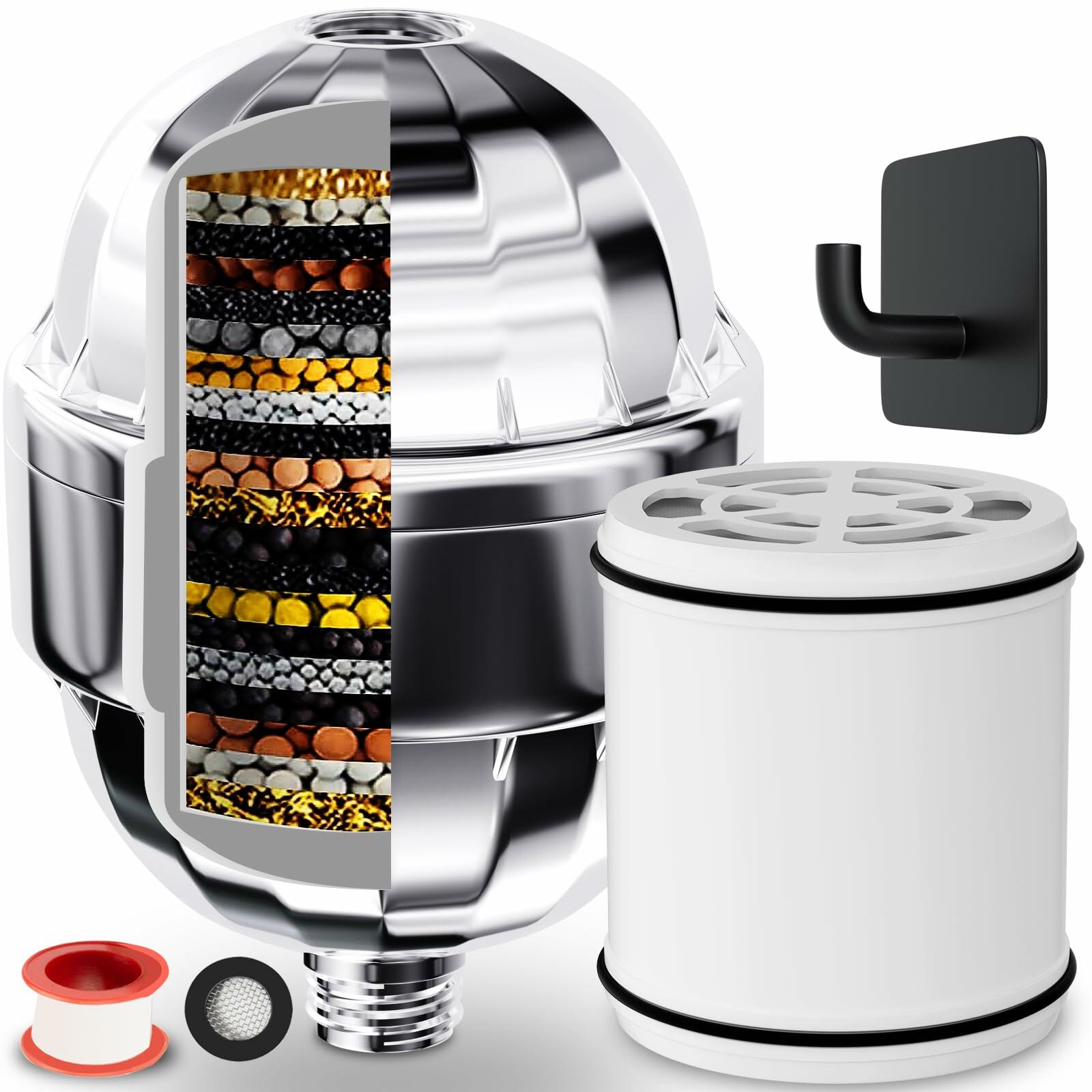 - Clearly Filtered: Our hard water filter effectively eliminates chlorine, heavy metals, and harmful contaminants from city, hard, and well water, ensuring gentle . Perfect for women, children, and pets, with a sleek silver design and premium ABS material