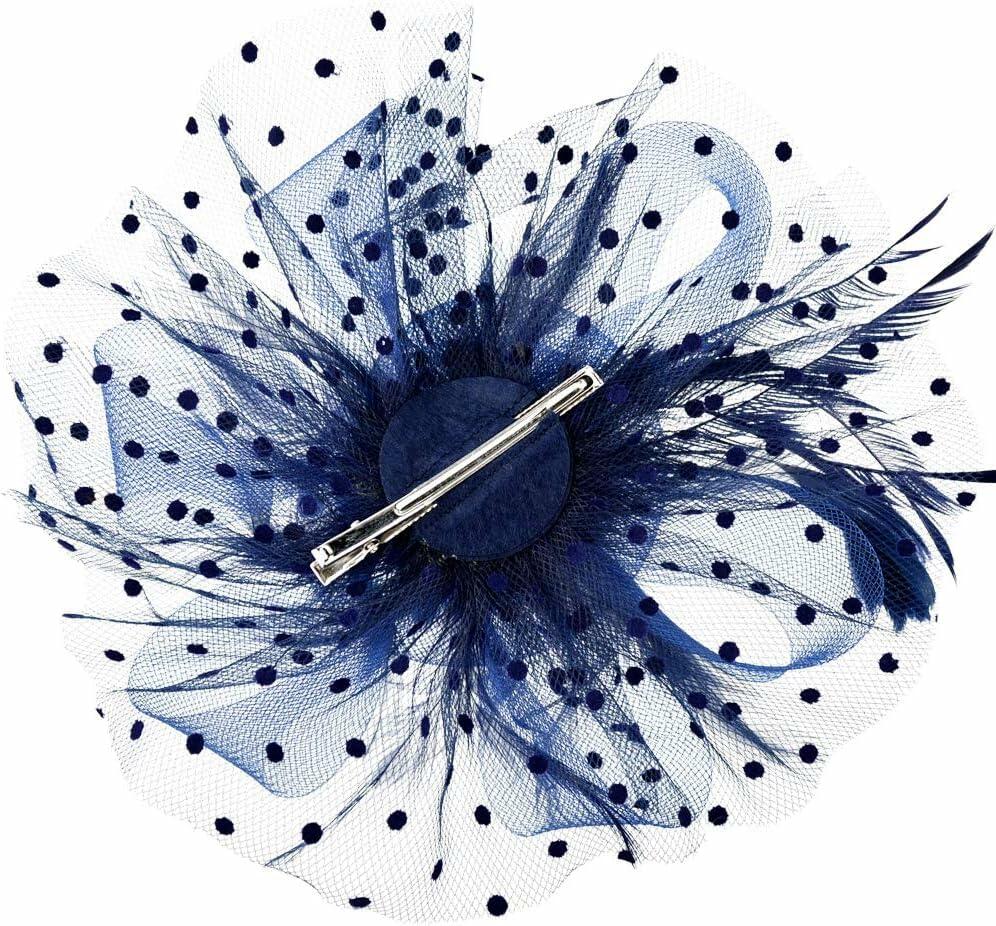 SHUERIET Women Feather Veil Floral Headband Hat Navy
