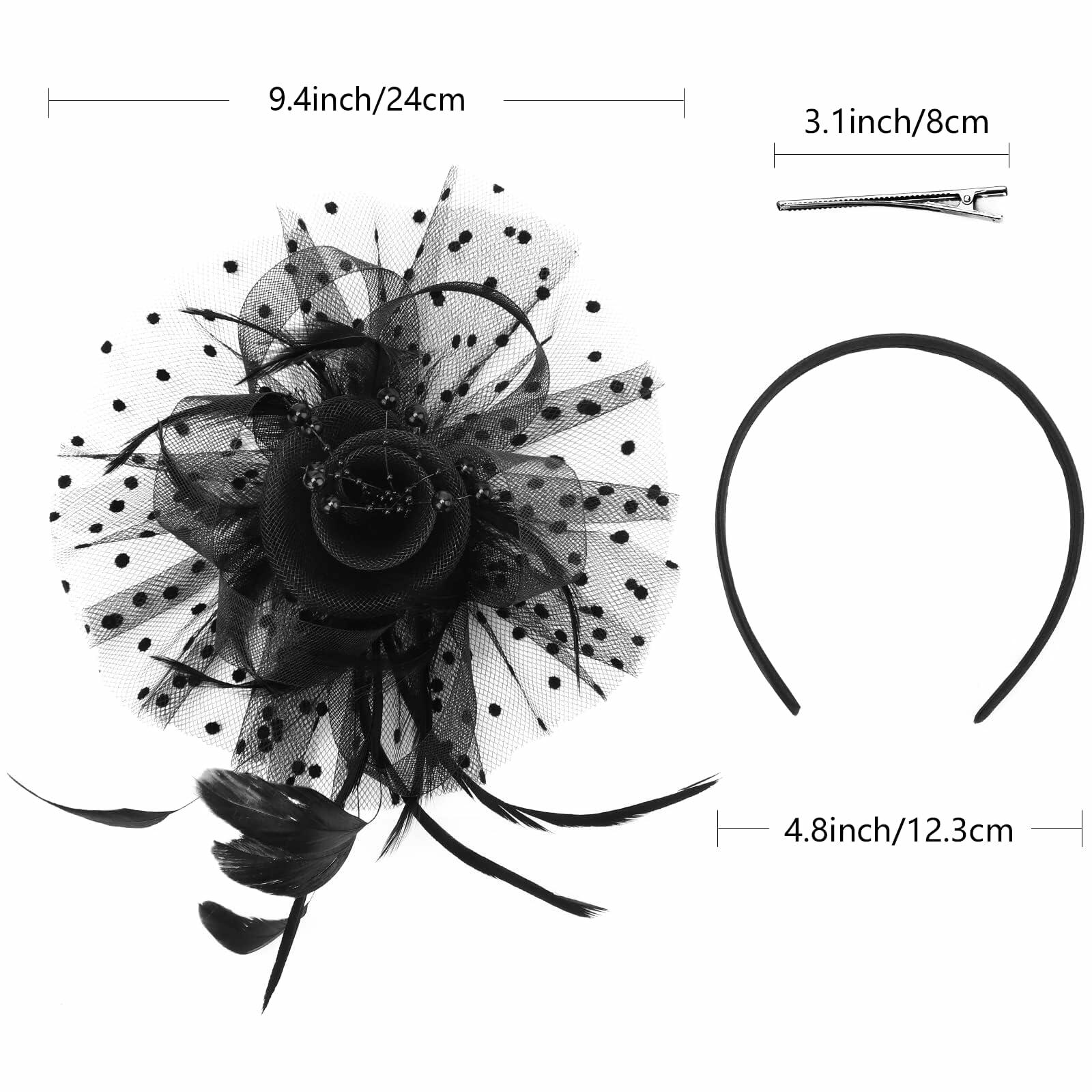 - This vintage glamour and fancy charming hat comes with a removable detachable clip and headband, you could free combine of them, as a headdress, hair clips, headpiece